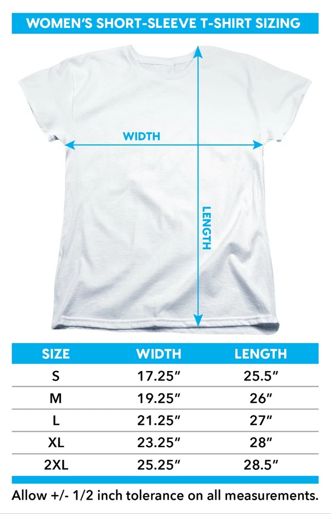 ABBOTT & COSTELLO Name: " Off Your Rocker " Garment Style: Women's T-Shirt Color: Navy Images On: Front Only Size Type: Women's Adult All garments are pre-shrunk, color fast and machine washable See pictures for sizing charts