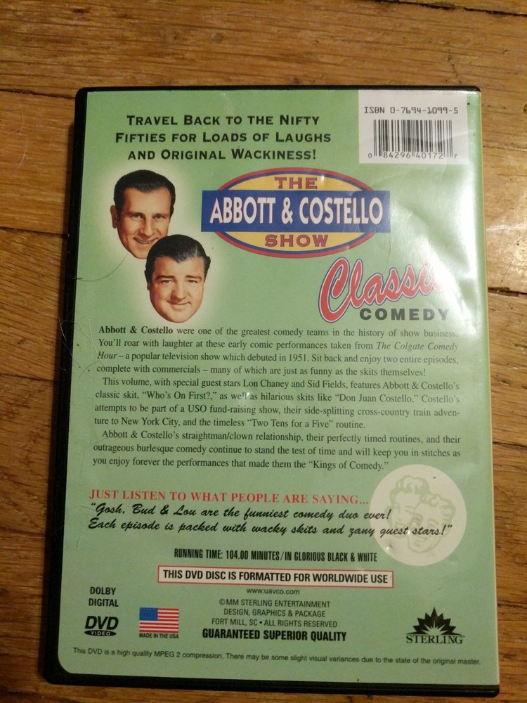 A hilarious classic of "The Abbott & Costello Show" featuring Who is on First? Used DVD.