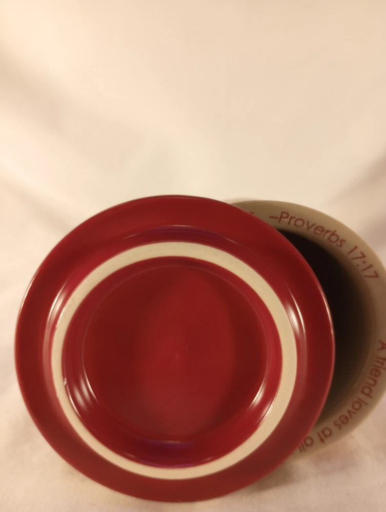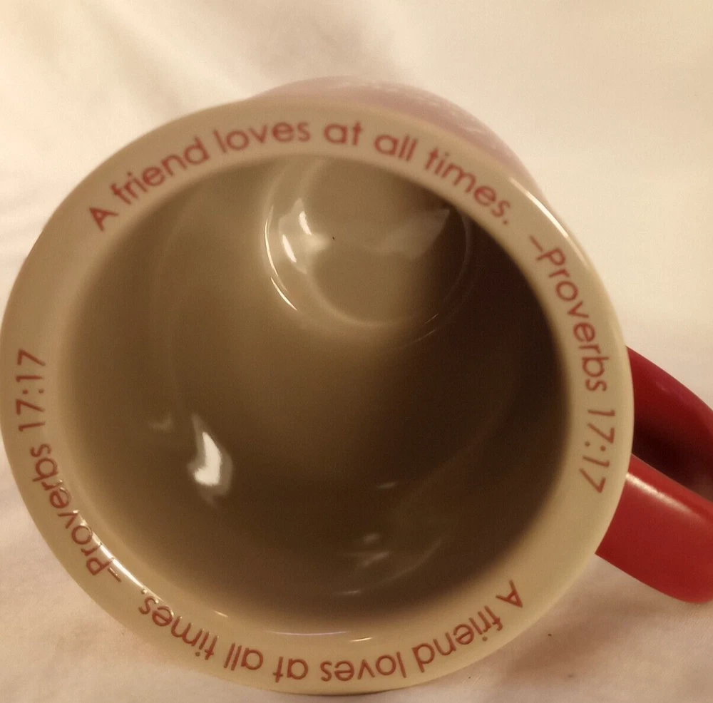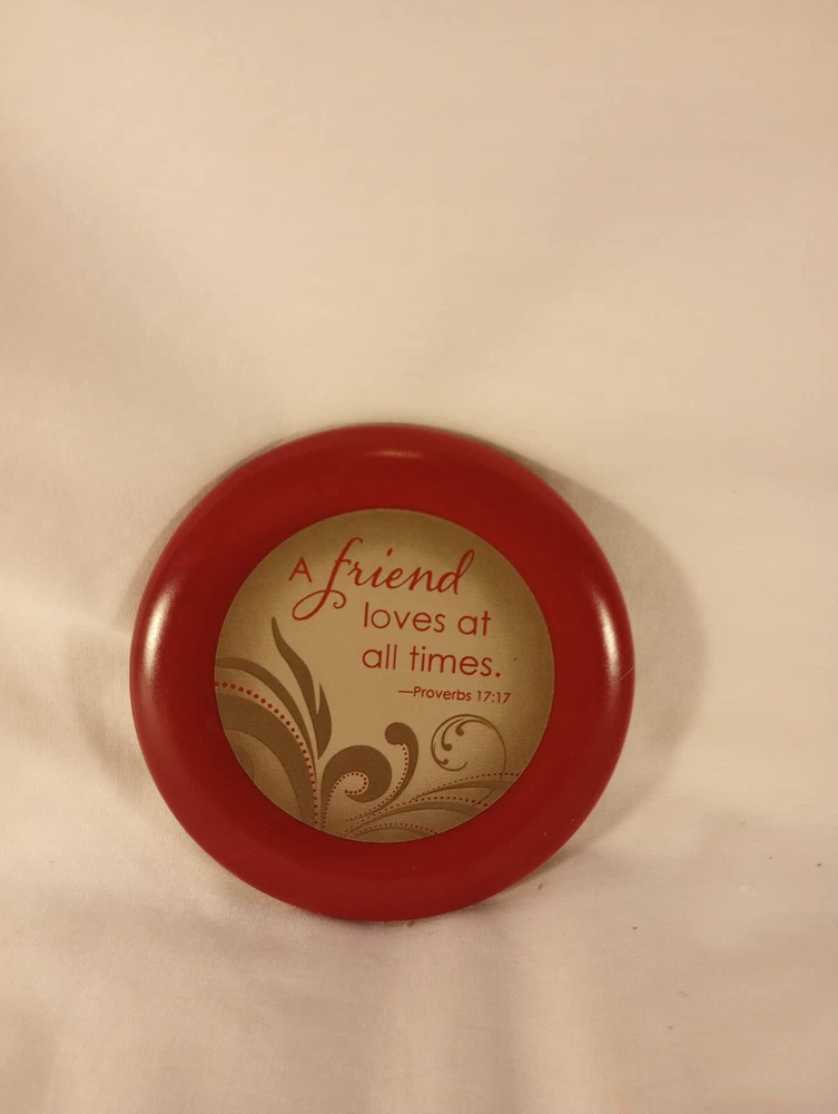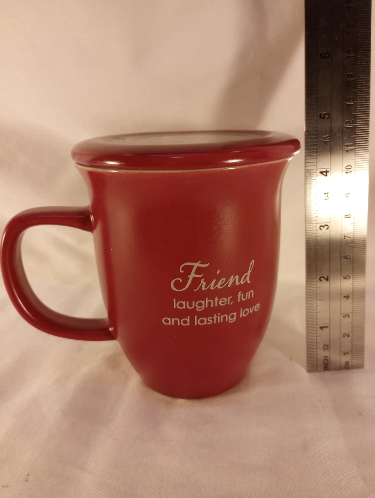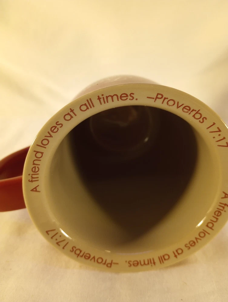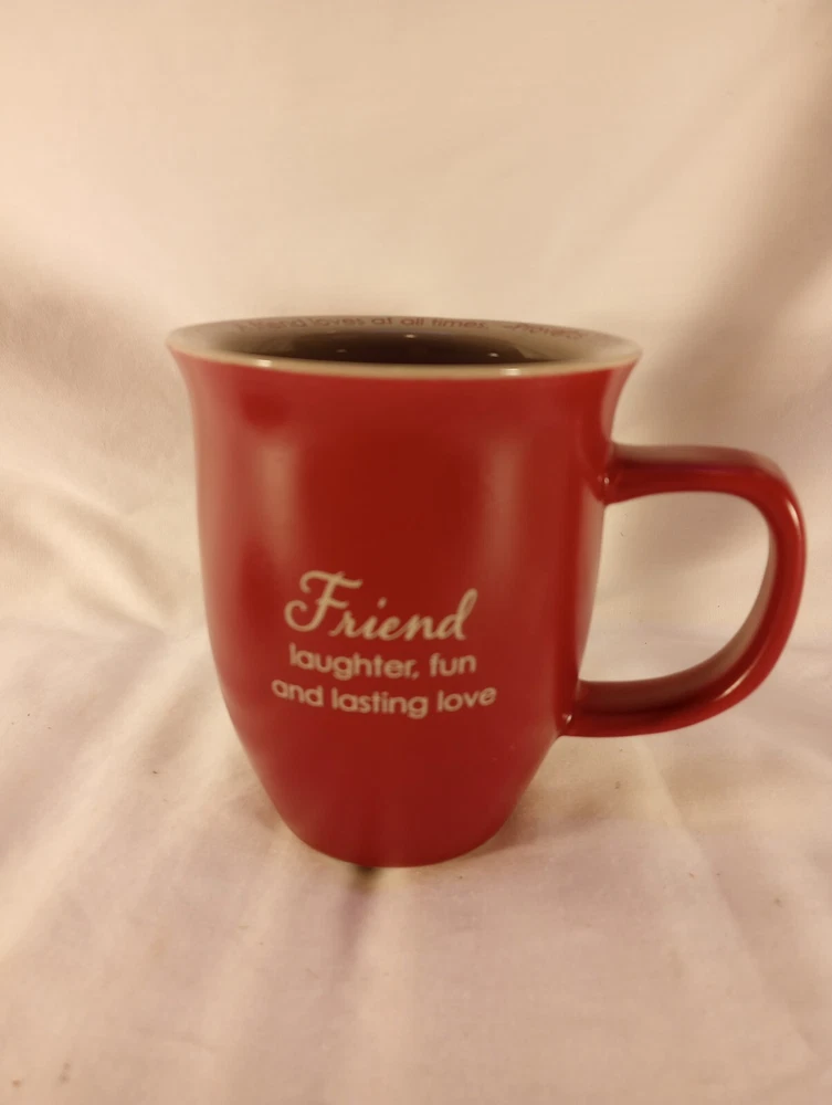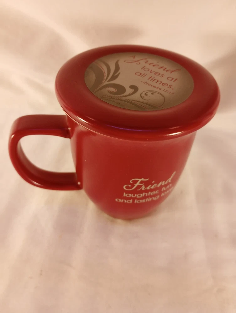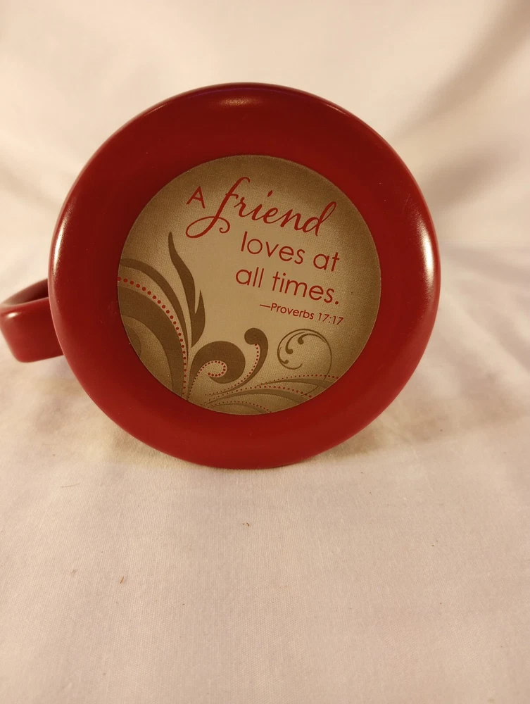 This cup displays the message that a Friend love at all times. It's lid serves as a lid or coaster. .Like a good marriage those who listen to the others trouble. Nice gift item. Also for those who's friend needs a reminder they are loved by you. Enjoy! (sorry for yellowish background, it is not yellow). Please see the shipping calculator for your personal shipping costs. Extra Questions for shipping could delay shipping. I will combine shipping costs whenever possible. Buyer pays for calculated shipping costs. Will be packed and shipped with care. Comes from a smoke free home. Pictures are showing the exact item and in no way guarantees the items for sale other than as is shown. Purchase as is in pictures only. All items are identified to best of my knowledge. Items May Be In Condition They Were Acquired In And May Need Cleaning Or Polishing. I do wash items that can be washed. Vintage and Pre-owned Items Are Often Used And May Show Signs Of Wear. We are not experts on any items. But give you the information we know about the items. Approximate Measurements and Condition Depicted in Photographs. Buyer pays return shipping if it has to be returned. Feel Free To Message With Any questions prior to purchase as we do not accept returns. Usually shipped priority or retail ground. I ship within one day of receiving payment. If you have any questions please e-mail me, I want you to be happy with your purchase.