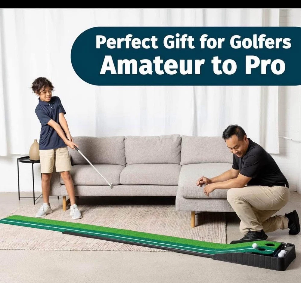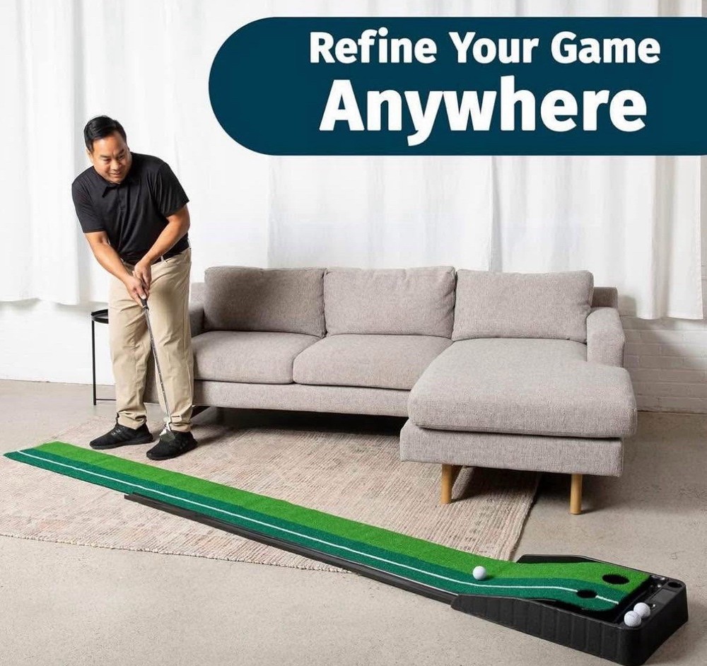 Abco Tech Indoor Golf Putting Green - Portable Golf Mat with Auto Ball Return - Mini Golf Practice for Home, Office, or Outdoors - Putting Mat for Golf Lovers Includes 3 Balls - 9.85 ft x 15.7in. J02G1Q4
