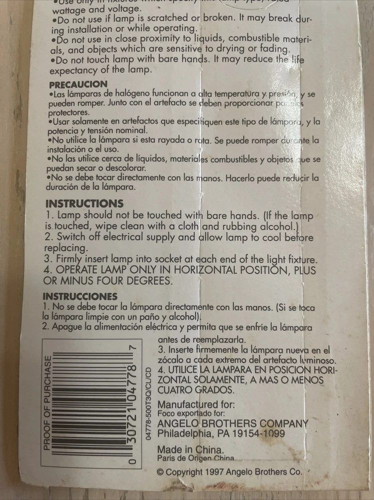 1 Brand New in sealed package Abco double ended halogen light bulb. 120V, 500W, double-ended, RSC base
