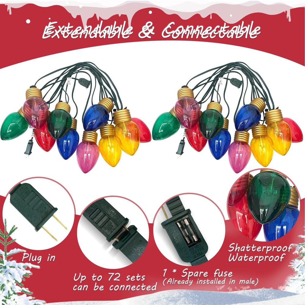 Abeja Vintage Jumbo Christmas Lights, 16FT Jumbo Xmas String Lights with 10 Colorful LED Bulbs, C7 Christmas Multicolor Light for Home Tree Roof Yard Holiday Garden, Multicolor Product Details Color: Jumbo Xmas String Lights Size: 6G-V8NO-QTH5 Brand: Abeja MPN: Does not apply UPC: Does not apply EAN: Does not apply Color: Jumbo Xmas String Lights Brand: Abeja Indoor/Outdoor Usage: Outdoor Special Feature: Corded Light Source Type: Energy Efficient Power Source: Corded Electric Light Color: Multicolor Theme: Christmas Occasion: Christmas Style: Classic Package Dimensions : 13.86 x 5.91 x 5.83 inches; 1.32 Pounds Item model number : / Date First Available : June 1, 2024 Manufacturer : Abeja Customer Reviews: 4.4 4.4 out of 5 stars 11 ratings Color: Jumbo Xmas String Lights Brand: Abeja Indoor/Outdoor Usage: Outdoor Special Feature: Corded Light Source Type: Energy Efficient Power Source: Corded Electric Light Color: Multicolor Theme: Christmas Occasion: Christmas Style: Classic Controller Type: Button Control Bulb Shape Size: C7 Control Method: Remote Seasons: Winter Manufacturer: Abeja Item Weight: 1.32 pounds Package Dimensions: 13.86 x 5.91 x 5.83 inches Item model number: / Special Features: Corded Batteries Included?: No Batteries Required?: No Date First Available: June 1, 2024