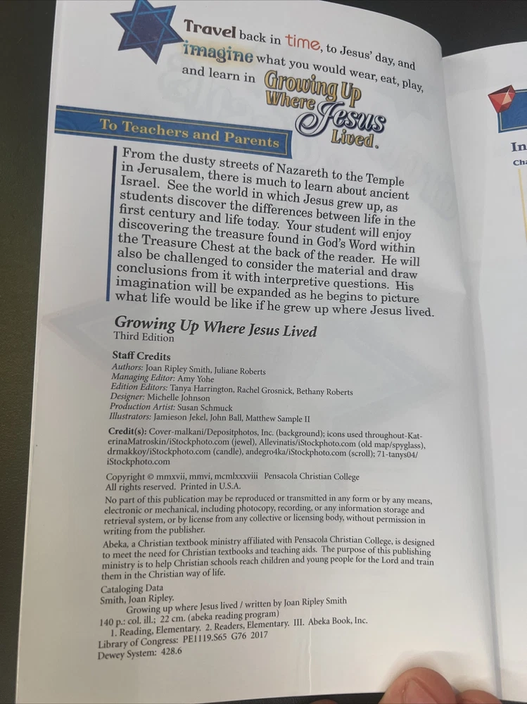 Language:Englishgtin13:Does not applyNumber of Pages:140Format:PaperbackPublisher:Abeka BooksType:ReaderFeatures:Third EditionPublication Year:2017ISBN:Does not applyPublication Name:Growing Up Where Jesus LivedAuthor:A Beka BooksCountry/Region of Manufacture:United StatesLevel:BeginnerSubject Area:Language Study, ReadingSubject:Homeschooling, Language & LiteratureBrand:A Beka BooksEducational Level:Elementary SchoolSeries:Abeka Reading ProgramMPN:243051