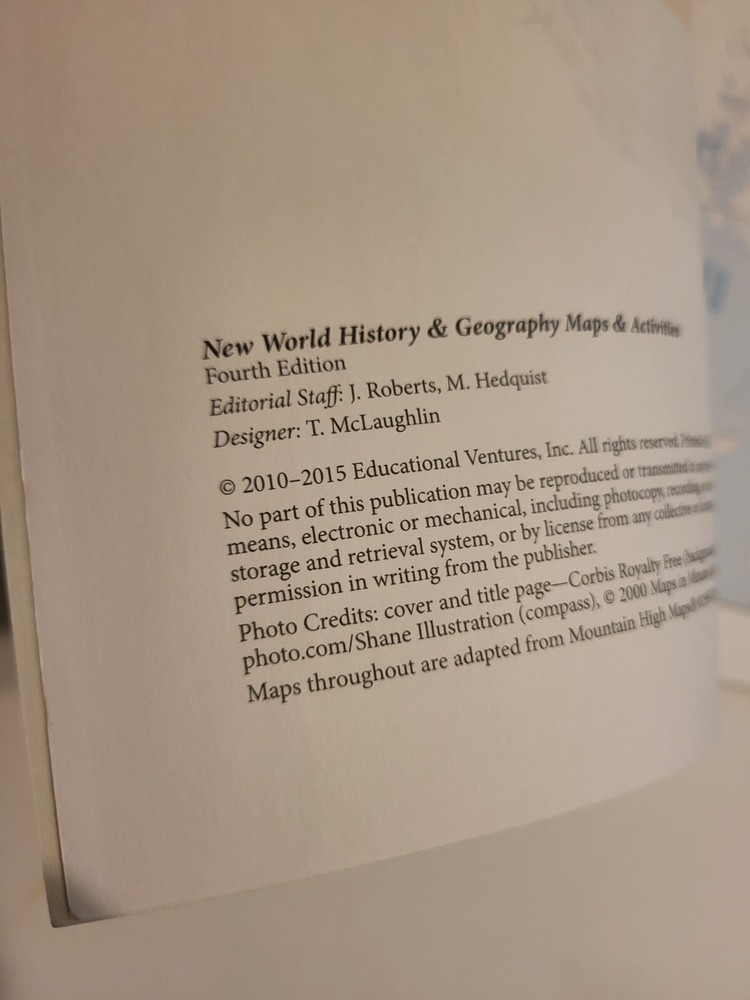 Abeka New World History & Geography Maps & Activities Teacher Key 4th Ed Grade 6 as pictured.