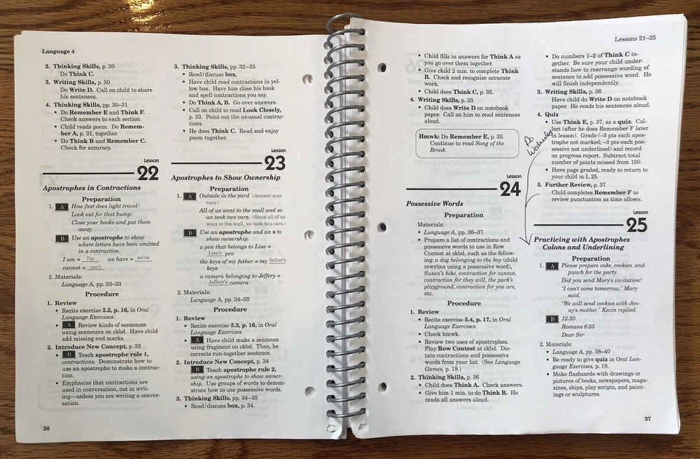 -Abeka Homeschool Language Arts 4 Curriculum Lesson Plans , Quiz and Test Key These are used books in overall good condition: -The pages of the Curriculum Lesson Plans book contain various markings in pen, pencil, highlighter scattered throughout the book -The Quiz/Test Key book contains writing in pink pen on page 5, but the remaining pages appear clean and unmarked -The covers of both books show some signs of wear -See pictures for details -If you decide to purchase these books, feel free to leave feedback or a review! We are a small business and any feedback helps -Be sure to check out our other listings for more used homeschool books!