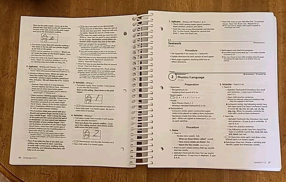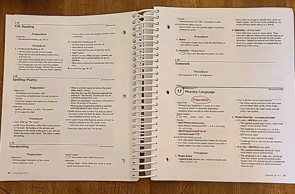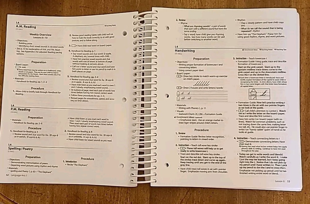 Abeka Language Arts 1 Curriculum Lesson Plans. The book has mild erased pencil, mild highlighting on some pages, and a couple of minor stains on pages, shown in pictures above. However, it is very usable in class. Acceptable Condition.