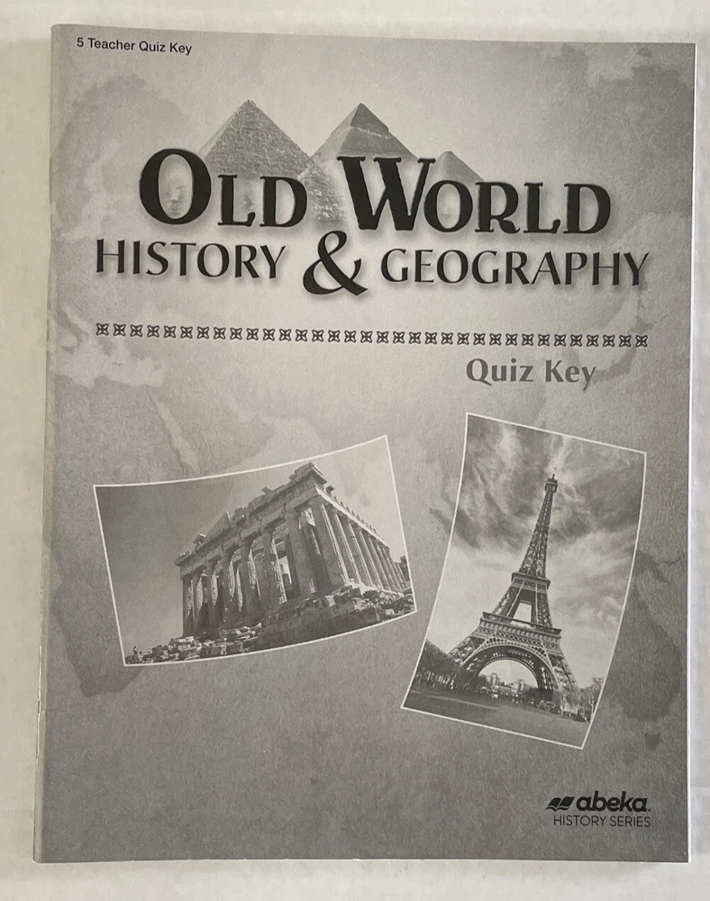 Abeka Old World History & Geography Answer Key - 158194 This is the current edition. (The cover on the website has been updated but the item # and inside answer pages are exactly the same.) Teacher Quiz Key - 135356 Teacher Test Key - 135321 Maps & Activities Key - 135305 5th Grade Current Fourth Edition In Very Good Condition with some wear to the outer covers. No writing, underlining, highlighting, tears, or missing pages. Please see photos. Ships with USPS Media Mail once payment is received.