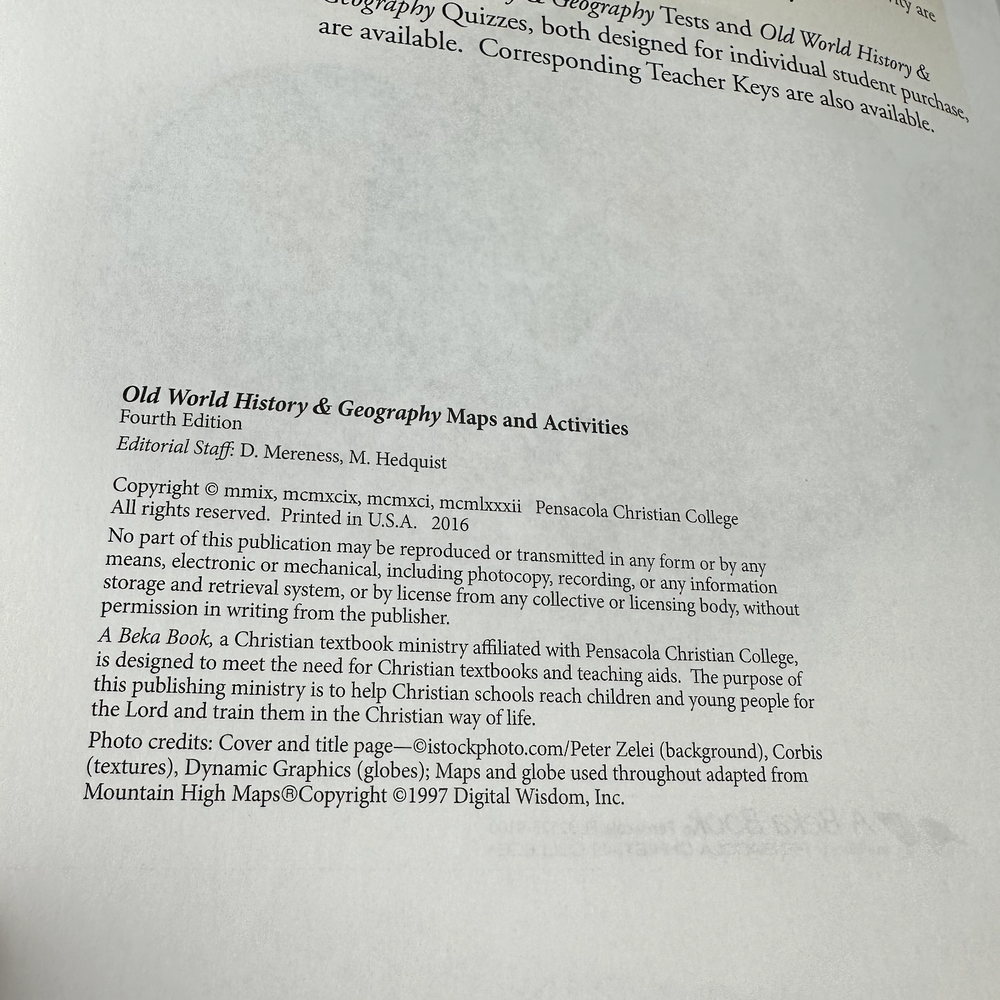 Abeka, Old World History and Geography, Maps and Activity Teacher Key, 4th Edition. Printed 2016 - 13530508 Smoke Free Home. Please view all pictures before purchase and for accurate description of item as these are the exact books you will receive. Shipping: Item will ship within three business days of cleared payment. Typically within 24hrs.
