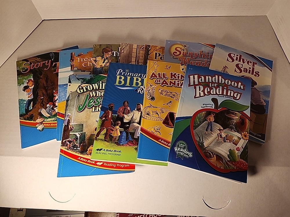 This lot includes the curriculum and lesson plans for A Beka Homeschool Phonics, Reading &Spelling 2, and A Beka Homeschool Writing &Seatwork 2. It also includes the 2nd grade student readers: "Story Tree", "Treasure Chest", "Hidden Treasure", "No Longer a Nobody", "Paths of Gold", "Sunshine Meadows", "Silver Sails", "Growing Up Where Jesus Lived", "All Kinds of Animals", "Primary Bible Reader", and "Handbook for Reading".