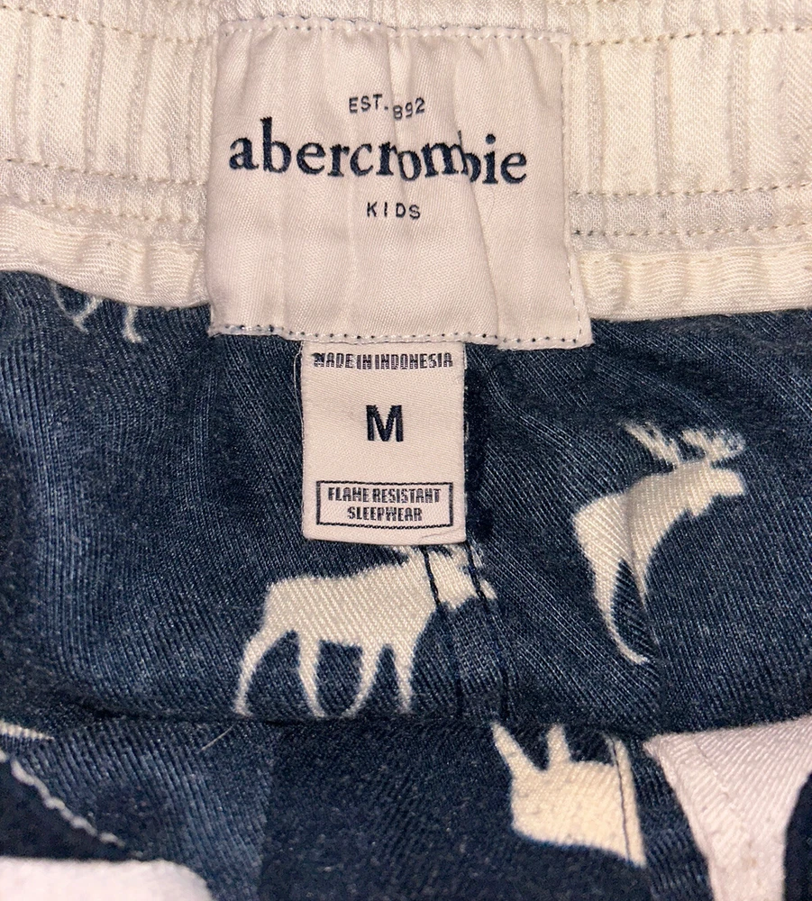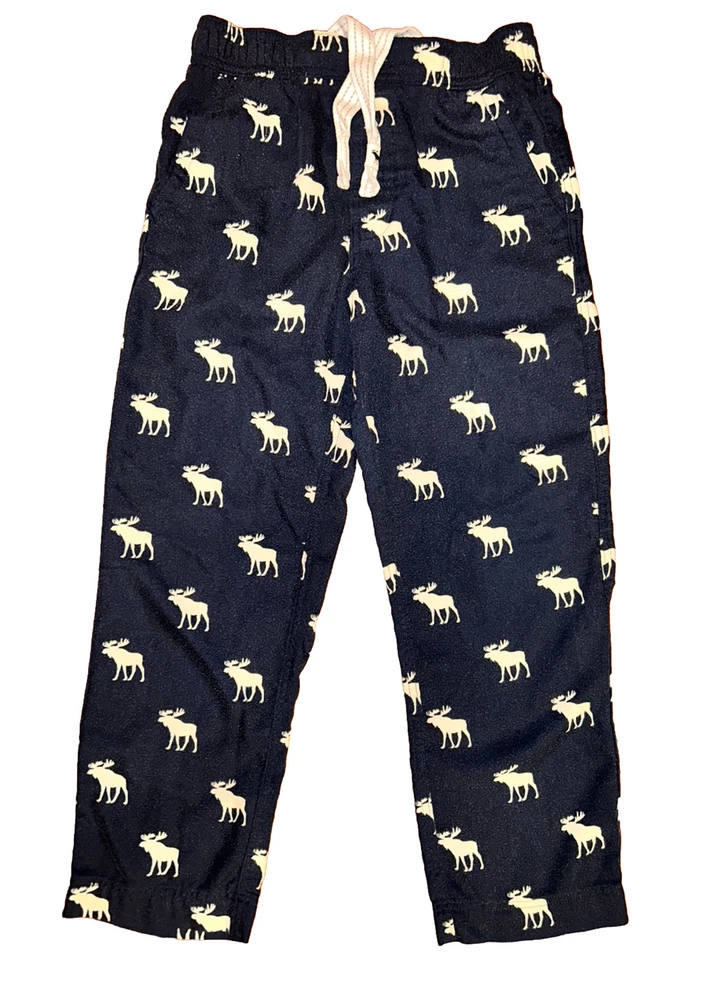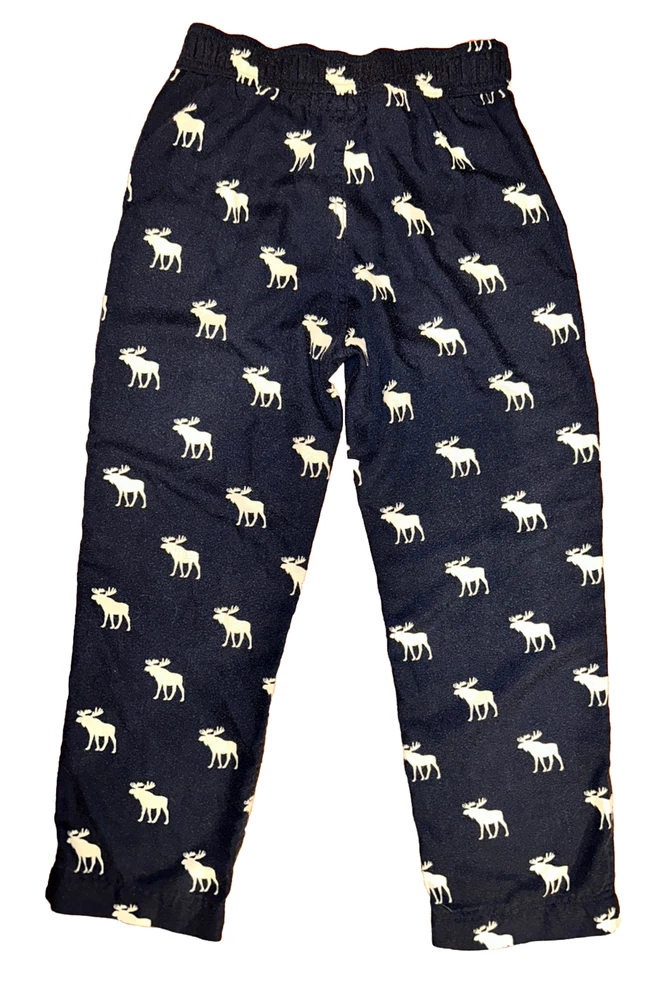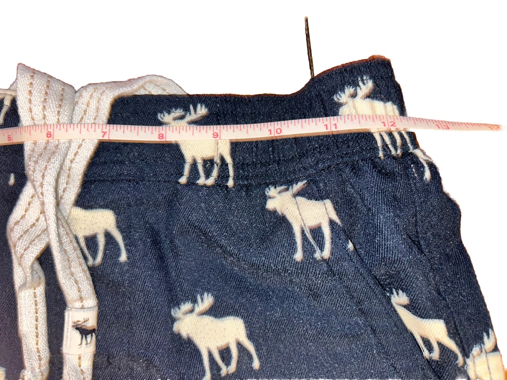 Abercrombie Boys Girls M 10 12 Navy Blue Moose Flannel Pajama Pants Pockets
