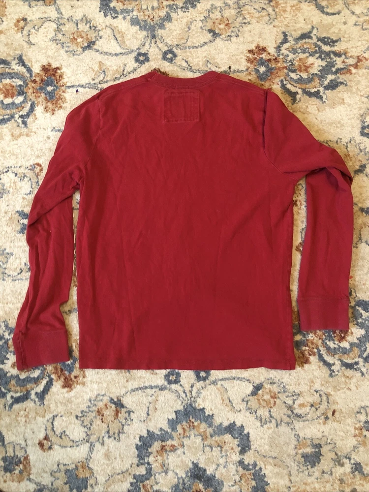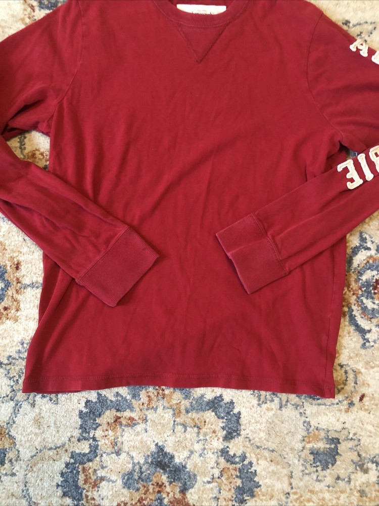 This Abercrombie & Fitch men's long sleeve T-shirt in size XXL is perfect for any casual occasion. The shirt features a solid red color, crew neckline, and a regular fit. Made of comfortable and durable cotton knit fabric, this shirt is machine washable and ideal for winter and fall seasons. The shirt also includes a subtle logo accent, adding a touch of classic, 90s, and preppy style to your outfit. This T-shirt is a great addition to any men's wardrobe and is perfect for those who value quality, comfort, and style. Tote 29