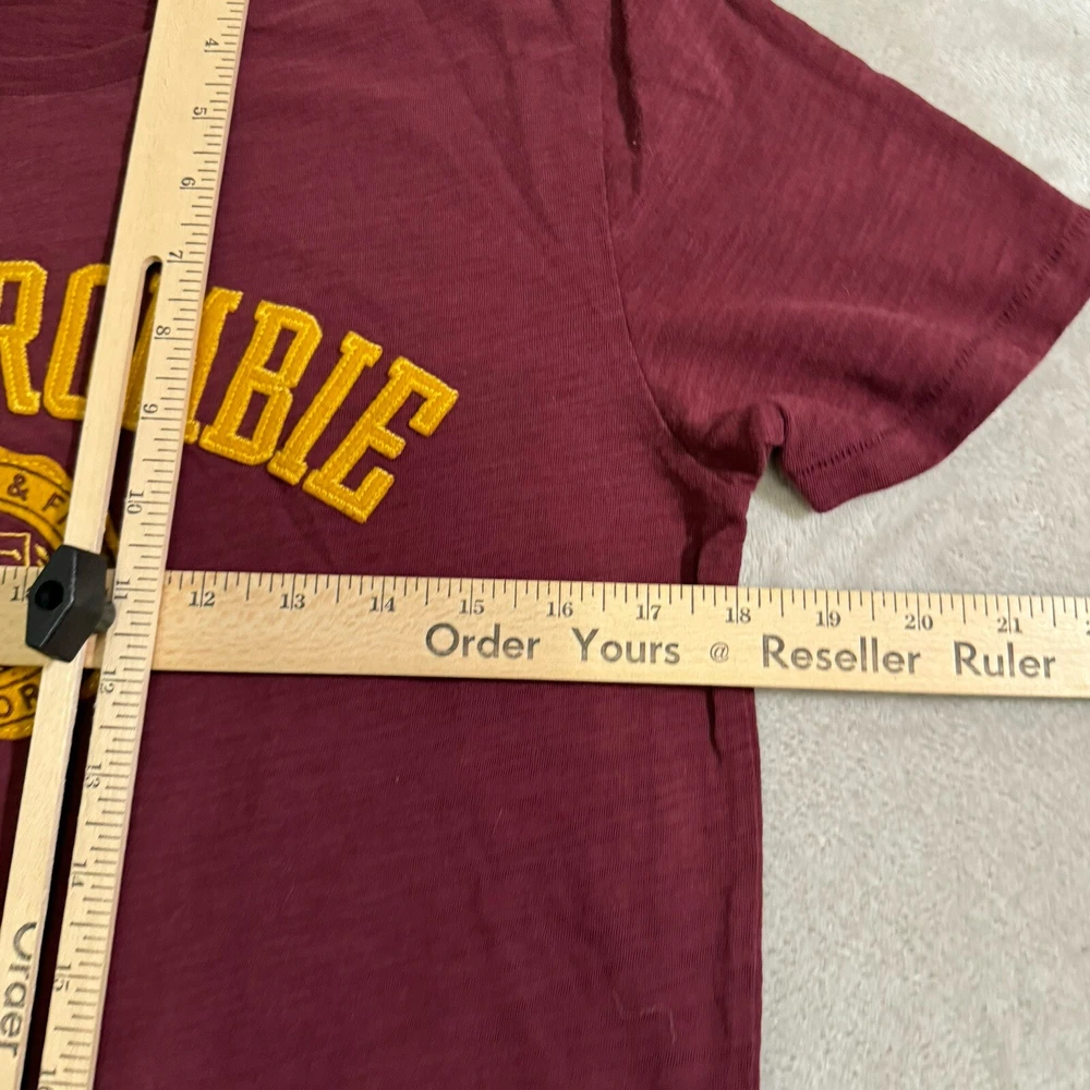 This Abercrombie & Fitch men's t-shirt is a must-have for any fashion-conscious individual. With its solid pattern, short sleeves, and crew neckline, it is perfect for any casual occasion. The maroon color adds a touch of class to the shirt, while the embroidered logo gives it a stylish accent. Made of cotton, this athletic fit t-shirt is comfortable to wear all year round, in any season. Its design is versatile, making it suitable for those who love designer, beach, dad, college, California, classic, or funny styles. This t-shirt is available in size small, and it is a regular fit.