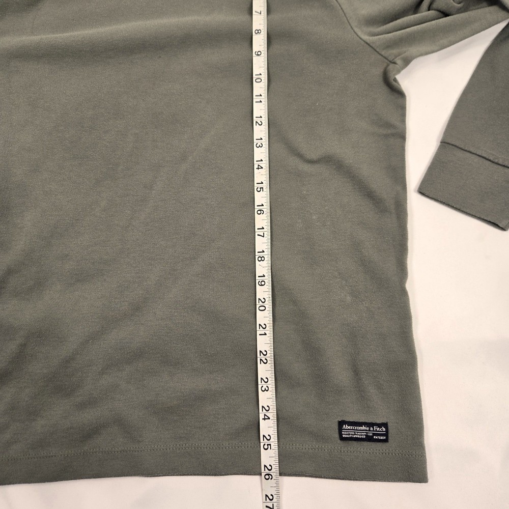 Abercrombie & Fitch Mens Soft A&F Tee Long Sleeve Olive Green T-Shirt Large Pre-loved nice condition with some minor wear Approx Measurements: • Pit to pit: 21 inches • Length: 26.5 inches Color: Green Department: Men Type: T-Shirt Fit: Regular Sleeve Length: Long Sleeve Pattern: Solid Character Family: Abercrombie & Fitch, A&F Features: All Seasons, Comfortable, Tagless Neckline: Crew Neck Material: Cotton Blend, Cotton, Polyester Keywords: Abercrombie & Fitch, Long Sleeve T-Shirt, Mens Tee, Olive Green, Casual Shirt, Soft A&F Tee, Crew Neck, Everyday Wear, Comfortable, Basic Tee, Cotton Blend, Large, A&F For Visual re-Measurements see pics Please compare the measurements to something you already own. Ships next day weather and post offing permitting