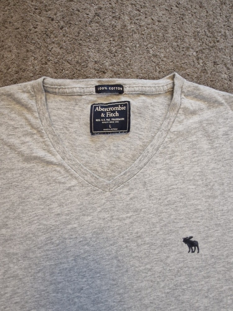 Abercrombie Fitch Mens Tshirt Large Grey V Neck 100% Cotton Moose Logo Casual
