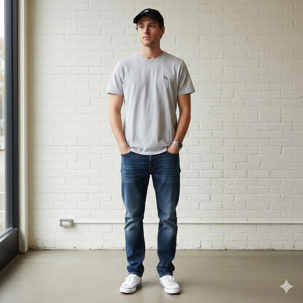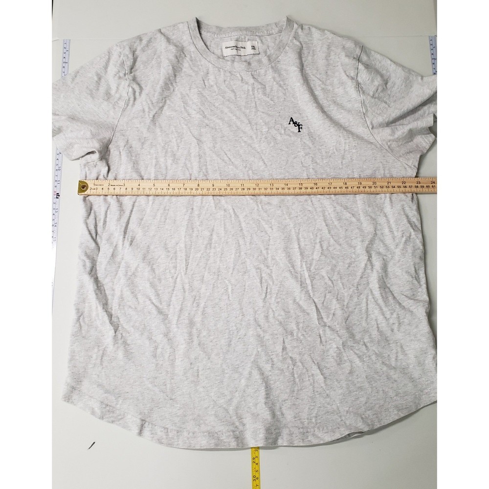 Abercrombie Fitch Soft AF Tee in gray • Brand: Abercrombie & Fitch • Color: Heather Grey • Size: XXL • Material: 100% Cotton • Condition: Pre-owned; no visible flaws • Style Aesthetics: Minimalist, Wardrobe Essential, Athleisure, Normcore, Casual Basics Measurements: • Chest (pit to pit): 23 in • Length (shoulder to hem): 28 in Modeled image was created using AI -- rest of the images are of the actual item. Please let me know if you have any questions. Ship same/next day. All items come from a smoke free home.