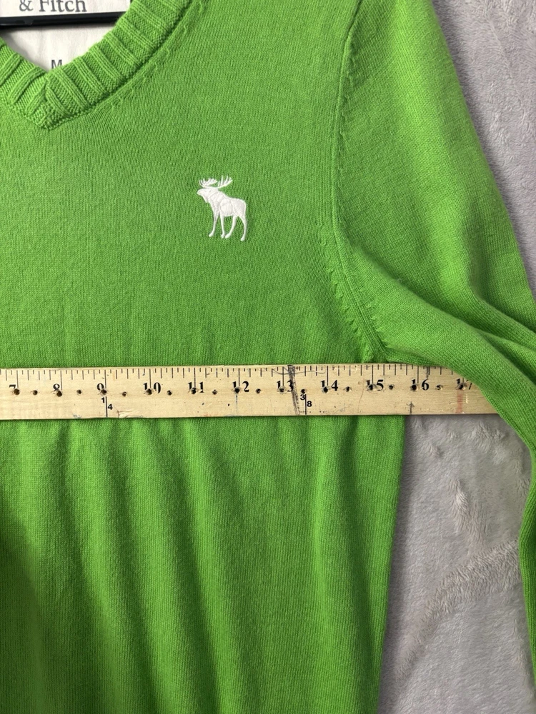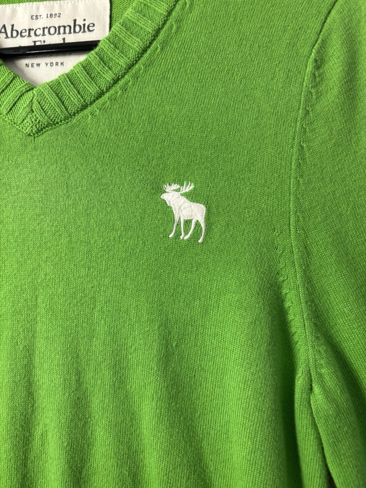 Abercrombie & Fitch men’s “Muscle” fit V-neck sweater in a bright green color with the classic embroidered moose logo on the chest. This is a clean preppy essential with a throwback/Y2K-inspired style that’s great for casual wear, layering, or a streetwear/prep look. Condition: Pre-owned in great excellent condition. No holes, rips, or major stains. Light normal wear from use. Please review all photos for the most accurate condition.