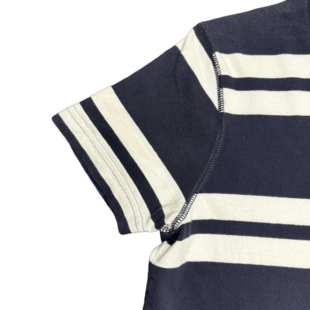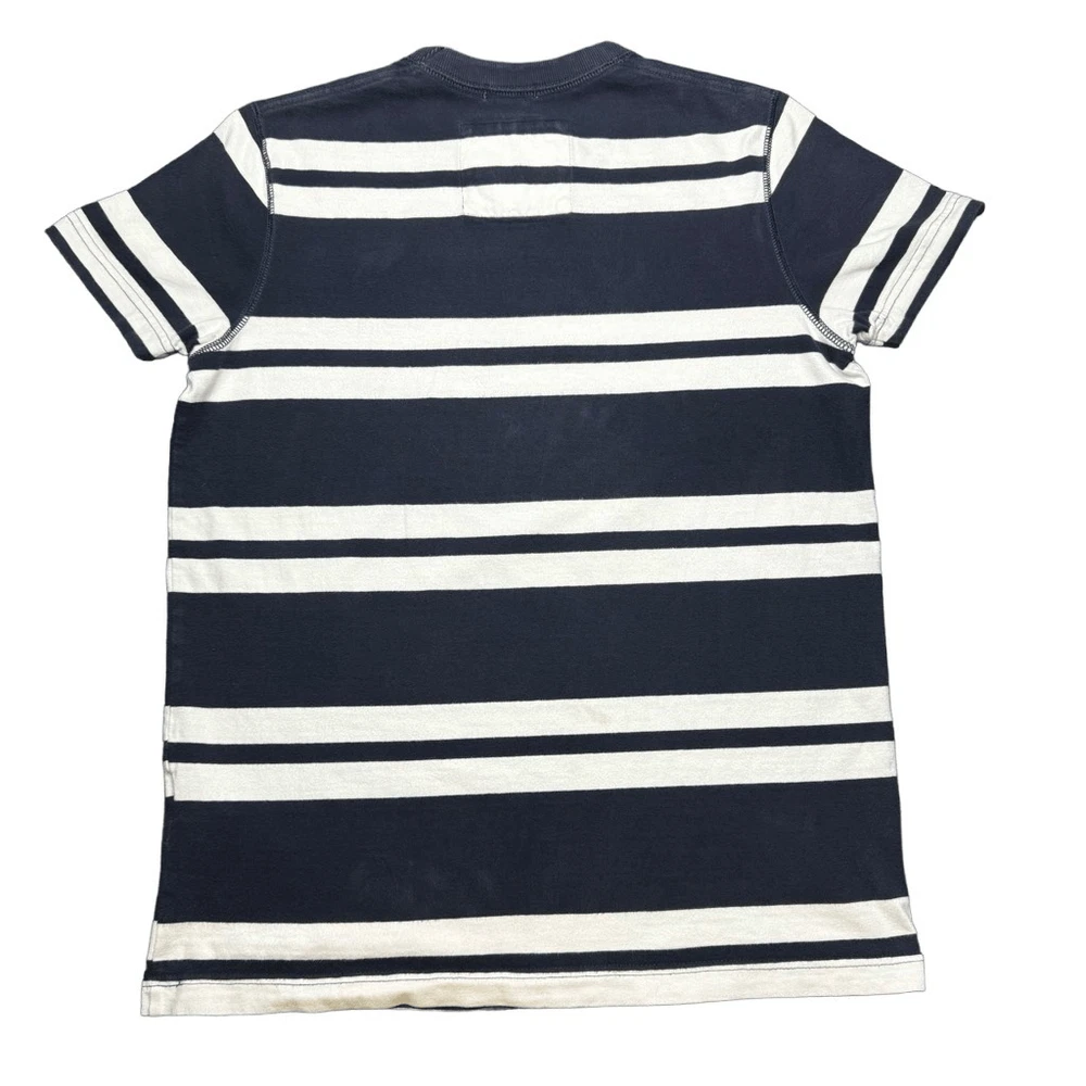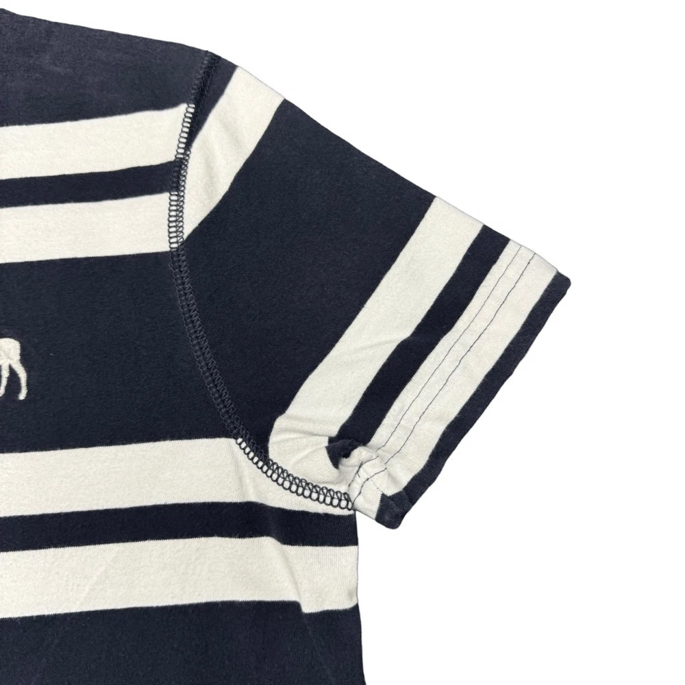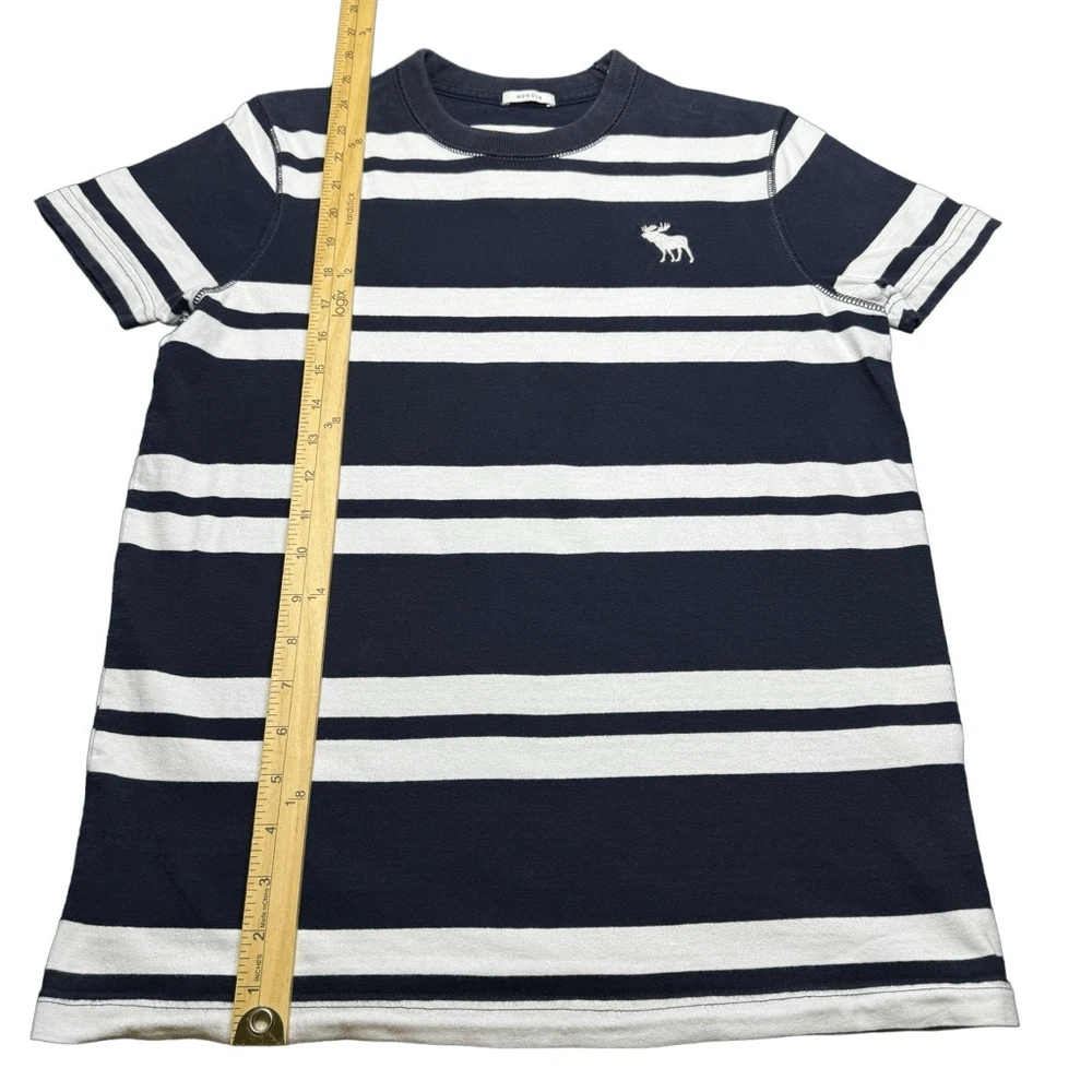 Abercrombie & Fitch Muscle Fit T Shirt Mens S Striped Navy Blue White Y2K Preppy In good condition with no rips, holes, or major stains. Has a very small very light spot on the back near the bottom. Also some very light fading overall. All can be seen in the pictures. Length - 25” Pit to Pit - 18”