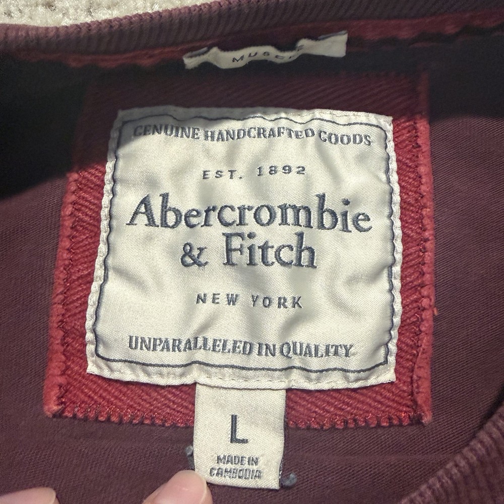 Abercrombie & Fitch Muscle long sleeve shirt in fair pre-owned condition. There is a small gray spot on the front and a small hole on one sleeve, which I have included in the pictures. Men's size large.
