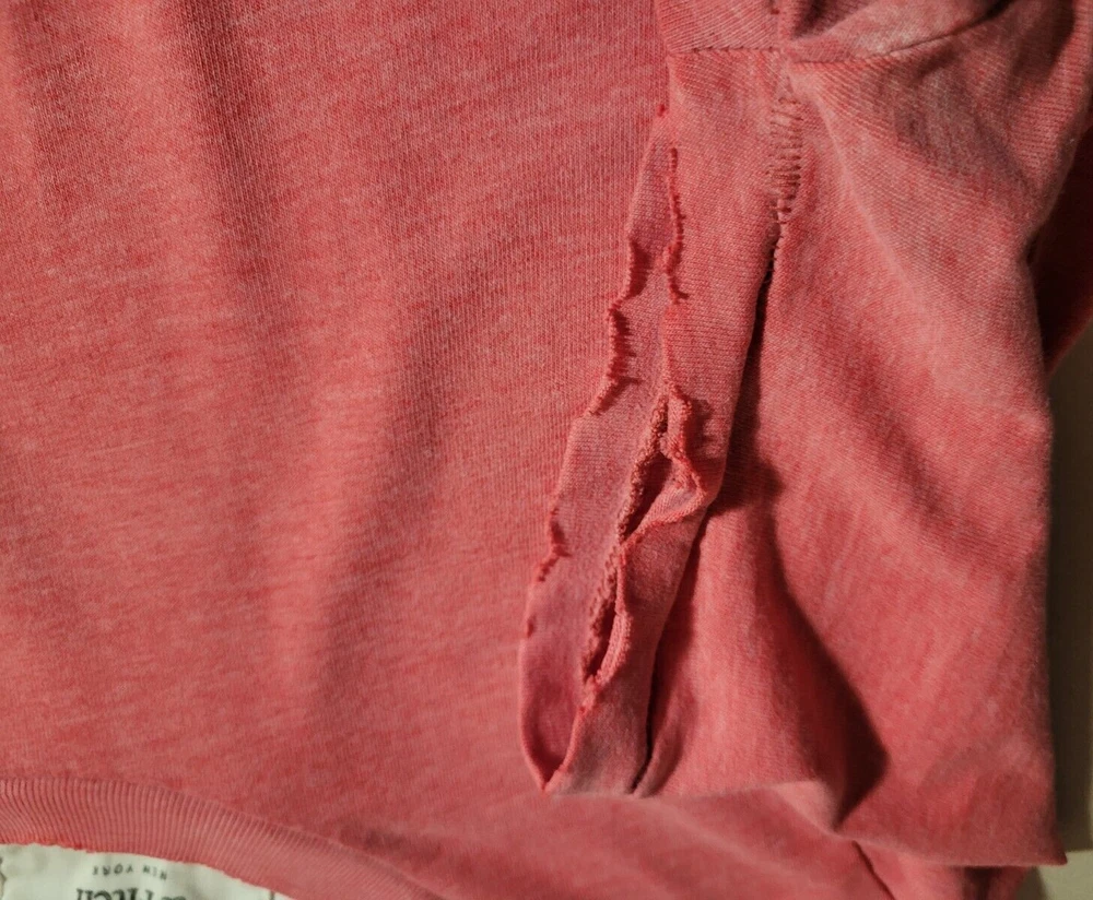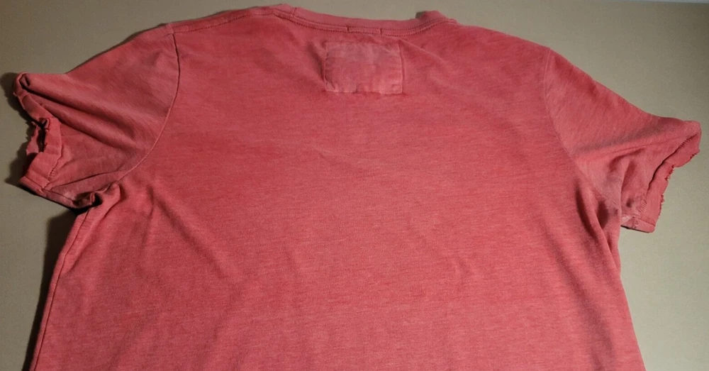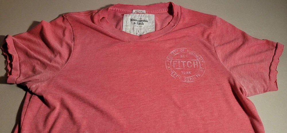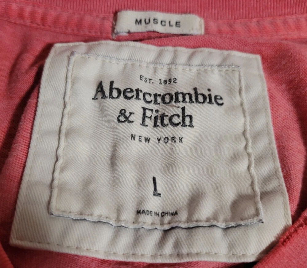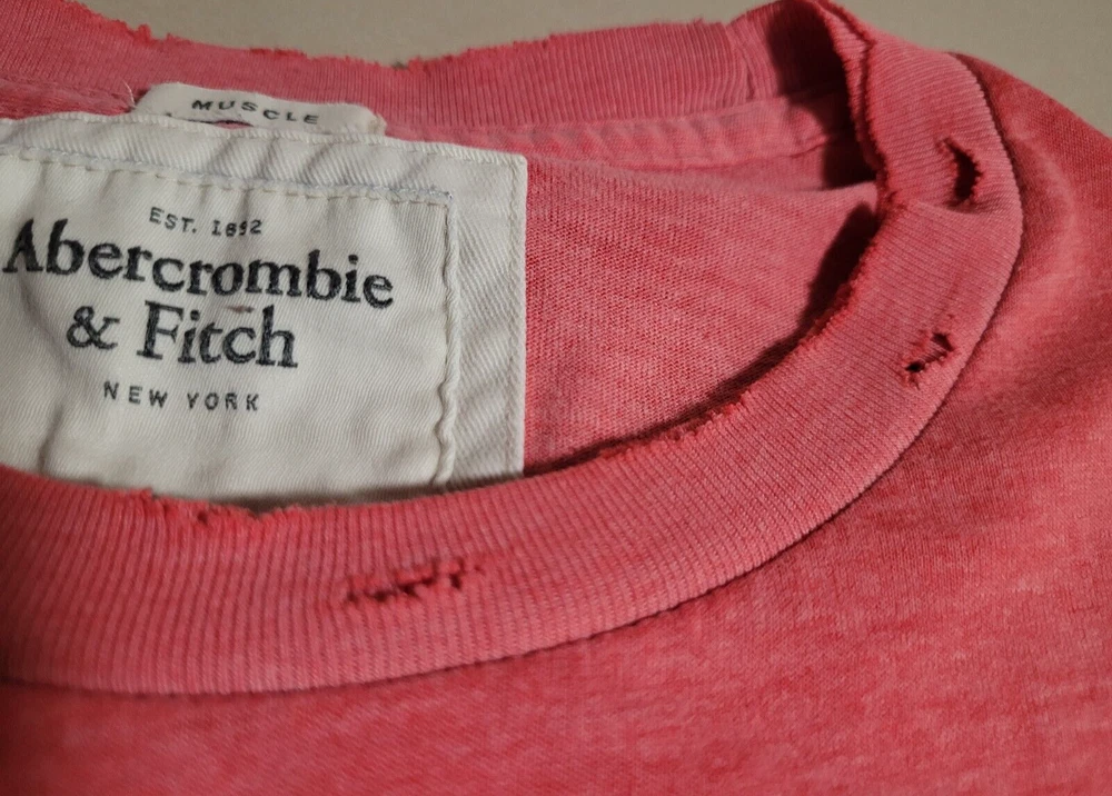 A men's Abercrombie & Fitch Muscle t-shirt in pink/red in size large manufactured in China. It has a small faded stamp and many holes and rips on the sleeve cuffs and the bottom associated with the distressed look and style of the shirt. The shirt is in otherwise great shape, please see the condition notes and pictures for more details. Length (shoulder to shoulder): 16 in / 40.6 cm Length (across chest): 19 in / 48.3 cm Length (top of shoulder to end of arm): 8 in / 20.3 cm Length (top of shoulder to bottom of shirt): 26.5 in / 67.3 cm Weight: 160 g Ask us about combining multiple items for discounted shipping! Free economy shipping in Canada and the USA for small package items! Fast shipping and 60-day free returns within Canada! Returns accepted from the USA for full refund of purchase price. Buyer pays return shipping. 100% satisfaction guarantee! If you are not satisfied, simply let us know and return it for a FULL refund! Comes from a pet-friendly smoke-free home! We encourage 100% positive feedback! Please contact us if you have ANY issue with your order or shipment so we can resolve it as quickly as possible before leaving any negative feedback! Please check out our other listings and share! Thank you kindly!