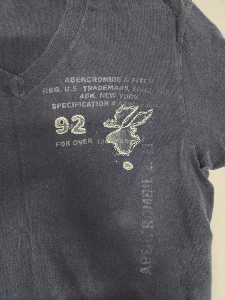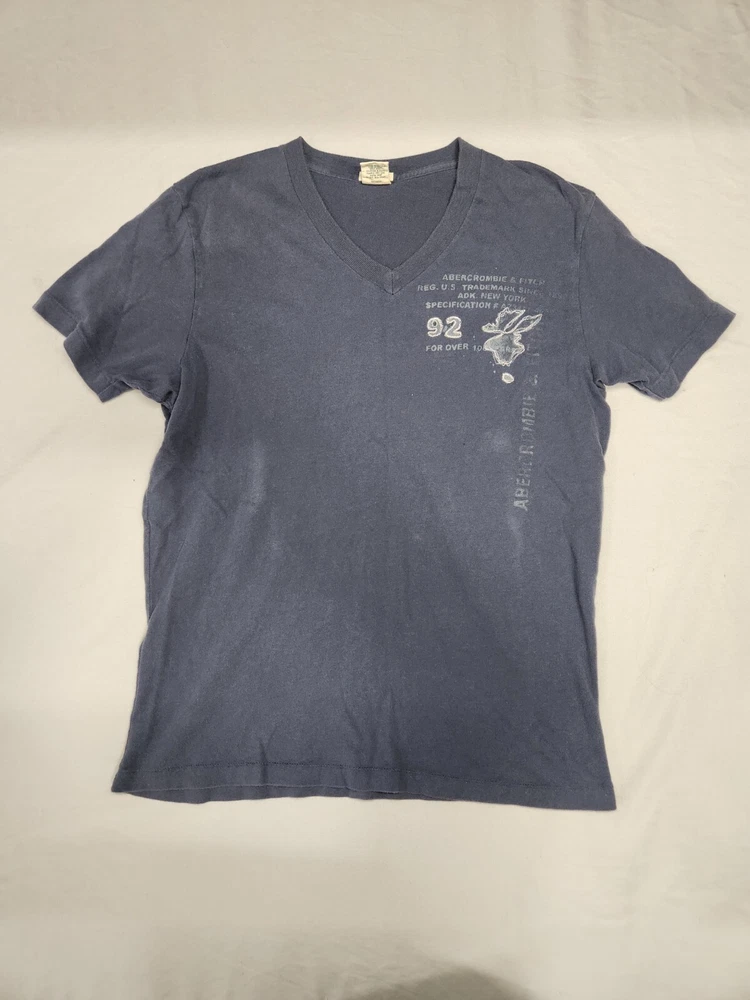 Abercrombie & Fitch Muscle T Shirt Men's Medium Moose Logo Navy Shirt V Neck Each item is carefully inspected, cleaned, measured, and stored in a smoke free, climate-controlled environment. This is a used item. Measurements may differ from new condition measurements. Please refer to photos for actual measurements and compare to a similar item of your own. There is discoloration in the material, can be seen in photos. There is a small hole on the front of shirt, shown in photo. We do our best to describe and measure each item accurately at the time of listing. We do offer free returns in case there are any issues or concerns with your purchase. Items ship either the same or the next business day after purchase. Please feel free to contact us if you have any questions or concerns.