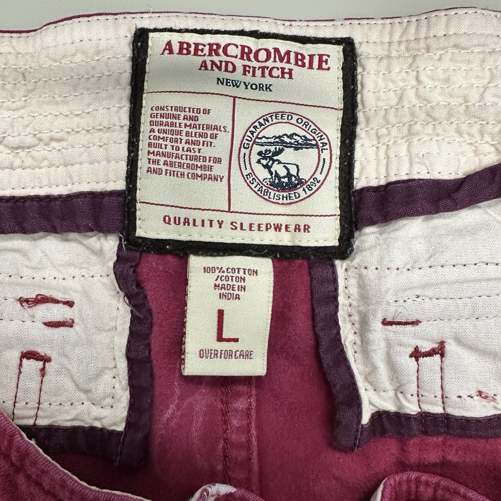 These Abercrombie & Fitch Men's Red Flannel Moose Sleepwear Lounge Pants in size L are a vintage Y2K piece that showcases the brand's iconic logo and preppy style. Made from cotton flannel, these drawstring closure pants feature a bold animal print pattern with a moose design, perfect for the winter, fall, and spring seasons. The pants are machine washable and adorned with button accents, adding a touch of comfort and style to your sleepwear collection. Ideal for men looking for a cozy and fashionable addition to their wardrobe. Small amount of fraying at the drawstring. See pictures