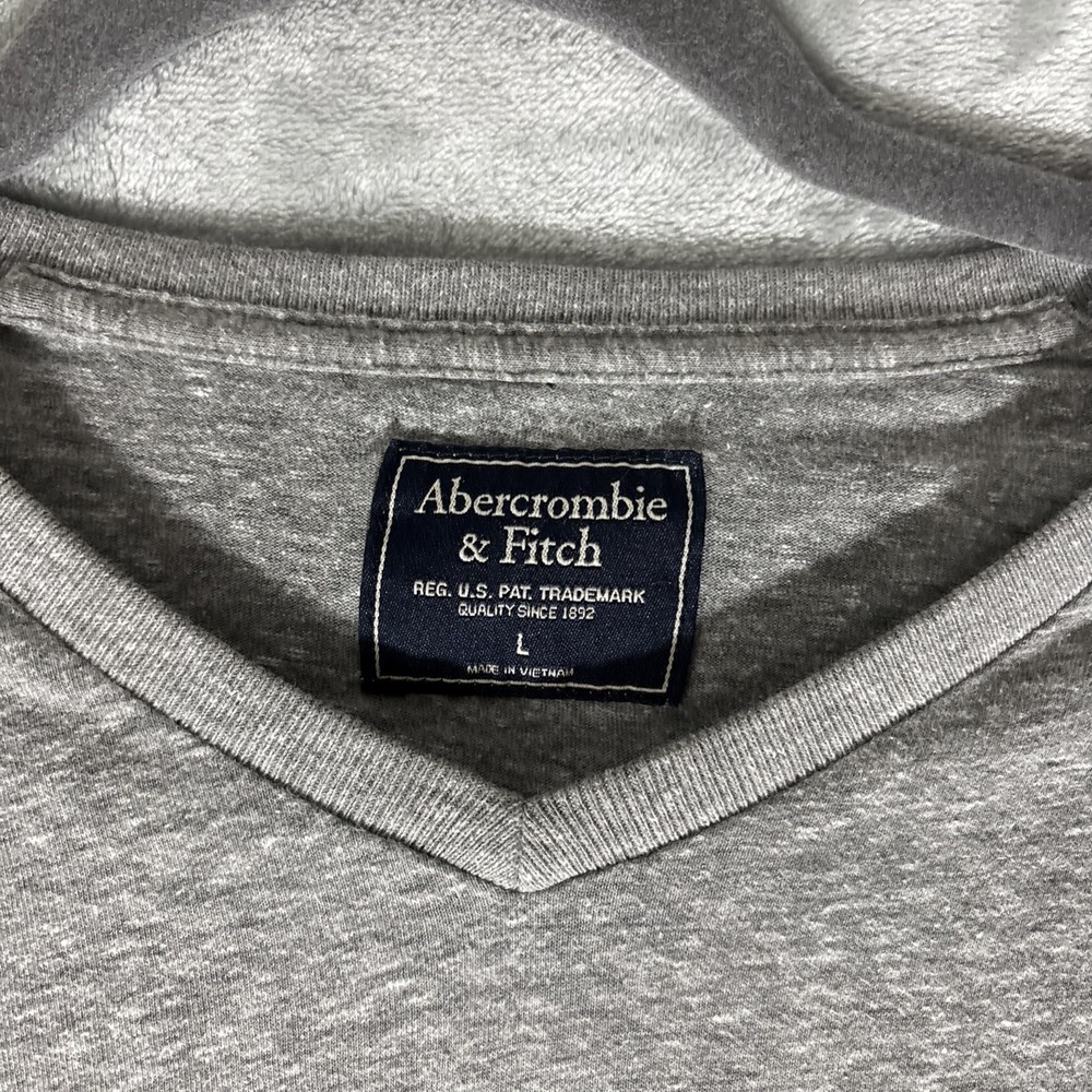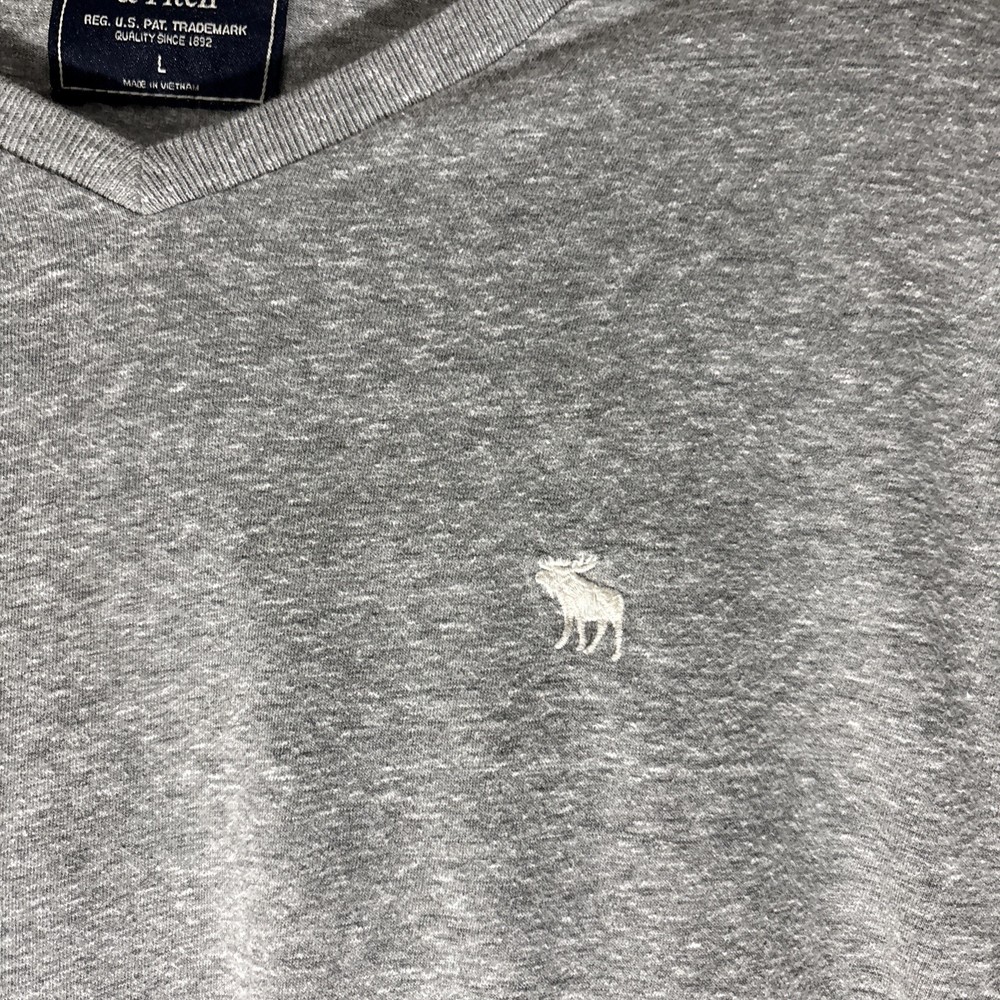 Abercrombie Fitch Shirt Mens Large Gray V Neck Cotton Blend Moose Logo Casual