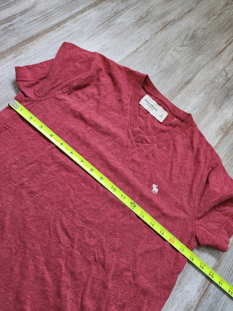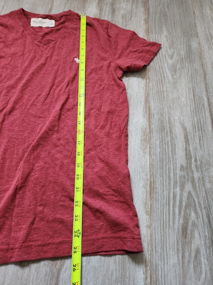 No known defects. Excellent used condition. The Abercrombie & Fitch Soft A&F Tee in red is a classic men's T-shirt featuring a V-neck design with an embroidered moose logo. Made from a comfortable cotton blend knit fabric, this lightweight tee is perfect for all seasons and has a regular fit. The iconic A&F branding adds a touch of preppy style to this wardrobe staple, making it a versatile and easy-care piece for any man's closet. • Abercrombie & Fitch T-shirt • Men’s size S • Classic A&F moose logo • Red solid color • V-neck neckline • Soft cotton blend fabric • Short sleeve tee • Lightweight and breathable • Casual everyday wear • Comfortable relaxed fit • Pre-owned, excellent used condition (EUC) • Authentic Abercrombie & Fitch men’s tee
