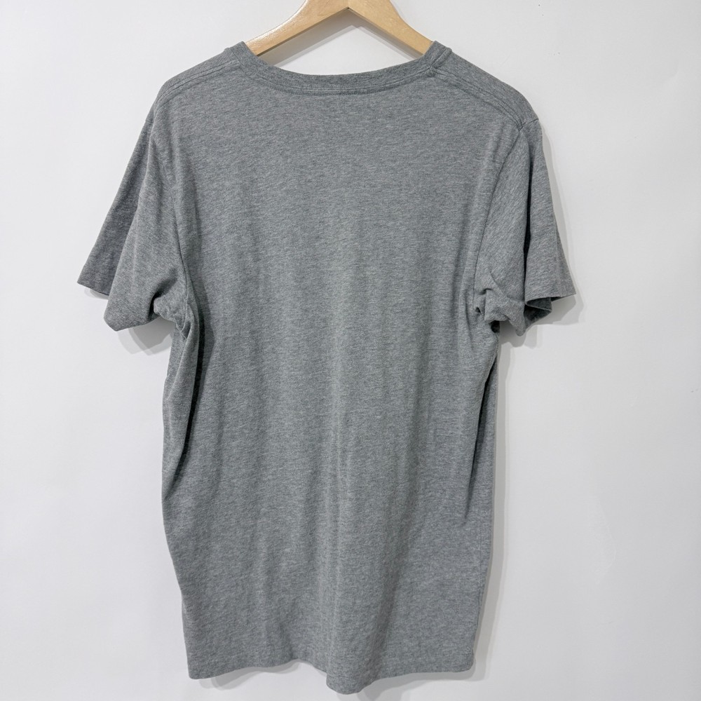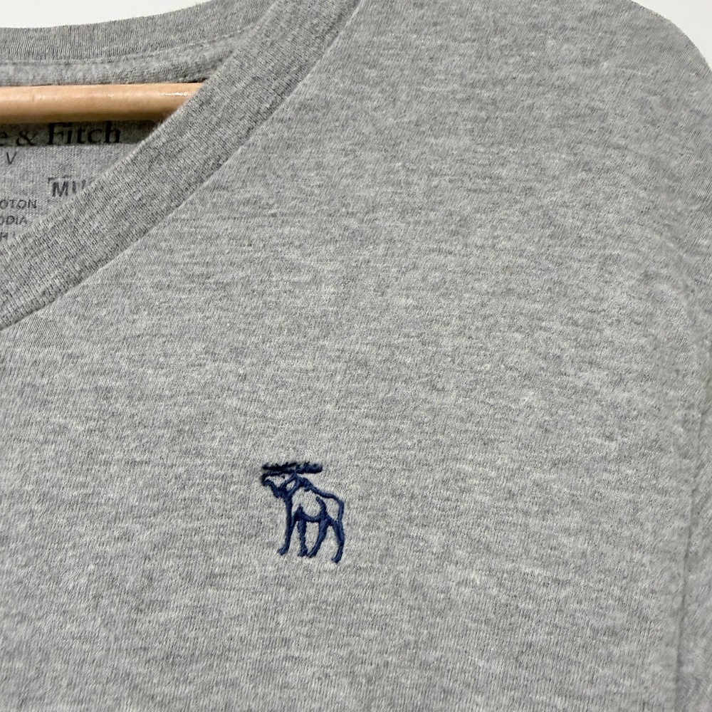 Super soft and stretchy heathered gray v-neck t shirt with embroidered moose logo. 100% cotton. Condition: Lightly used, great pre-owned condition. No rips, stains, or holes. Measurements in photos. *Please compare measurements to something you already own. *Next business day shipping! *Thank you for supporting my small business!
