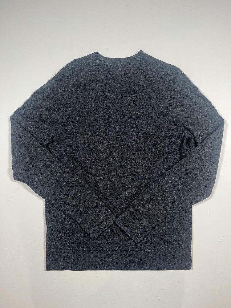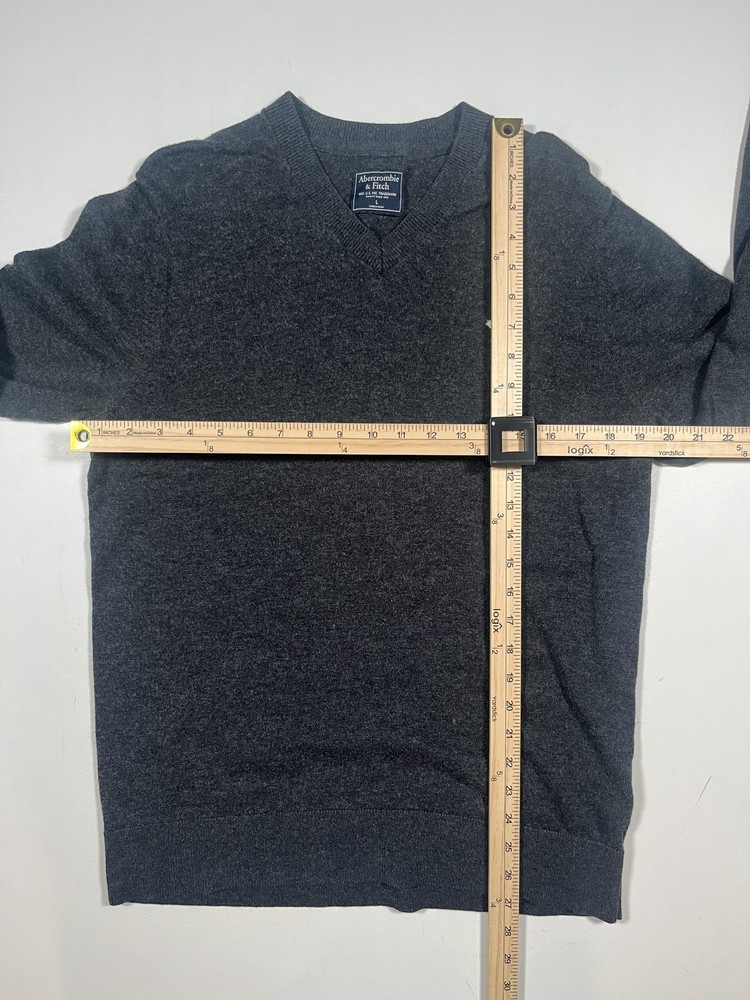 Abercrombie & Fitch Sweater Mens Large Gray V Neck Pullover Moose Chest Logo Lightly worn with minimal wash wear; fabric clean and intact with no holes or stains. Embroidered chest logo and ribbed trim in good shape. Neck tag intact; no original retail hangtags included. Brand: Abercrombie & Fitch Style: Mens V-neck pullover sweater. Color: Dark heather gray solid knit. Size: Mens Large (L on tag). Material: Soft knit fabric. Features: Long sleeves, ribbed V-neck collar, cuffs and hem, small white embroidered moose logo at left chest, classic casual layering sweater design. Tag details: Label reads Abercrombie & Fitch REG. U.S. PAT. TRADEMARK QUALITY SINCE 1892, size L. Country of origin: Made in China. A5143