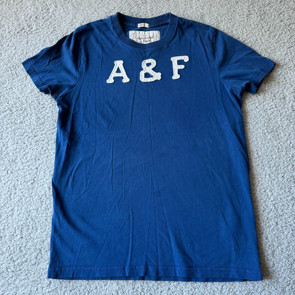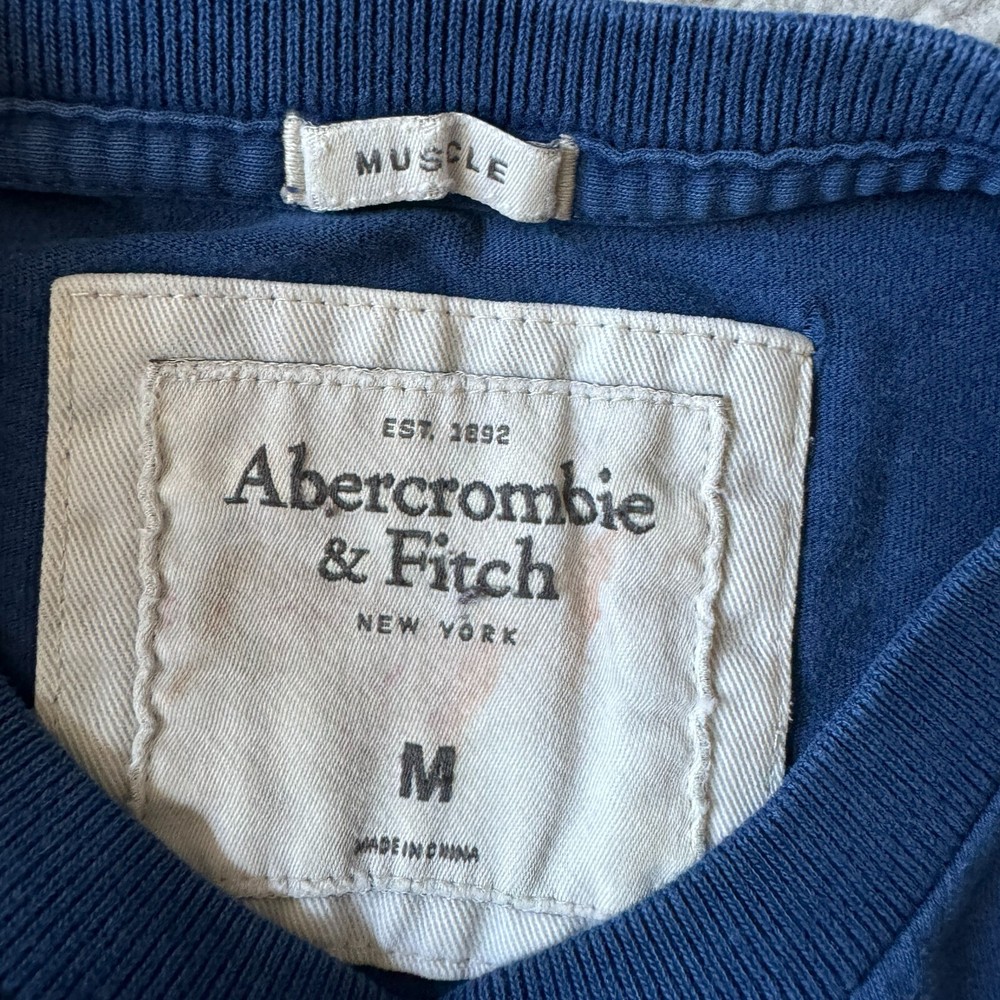 Abercrombie & Fitch T Shirt Mens Medium Blue Muscle Embroidered Casual Dailywear Condition: Pre-owned. Good condition small hole and small stain. Please see all photos for condition and measurements. Please let us know if you have any questions. Thanks for shopping with us.