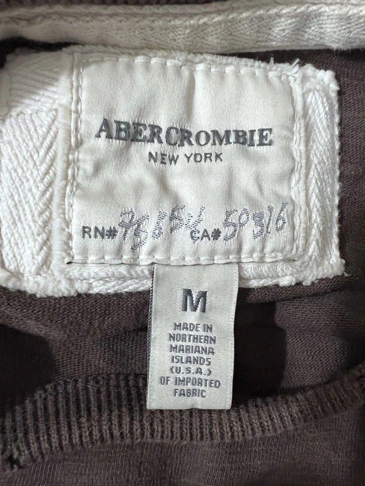 This Abercrombie & Fitch vintage T-shirt is a must-have for any fashion-savvy man. The crew-neck design and short-sleeve cut make it perfect for warm weather wear, while the muscle fit ensures a comfortable and stylish look. The solid brown color and graphic tee style add a touch of personality to any outfit. Made from 100% cotton, this shirt is both durable and breathable, ensuring a long-lasting addition to your wardrobe. The size is a regular medium, perfect for most men's clothing needs. Don't miss out on the chance to add this classic piece to your collection. Armpit to armpit 20” Length: 27” NO RETURN ALL FINAL SALES