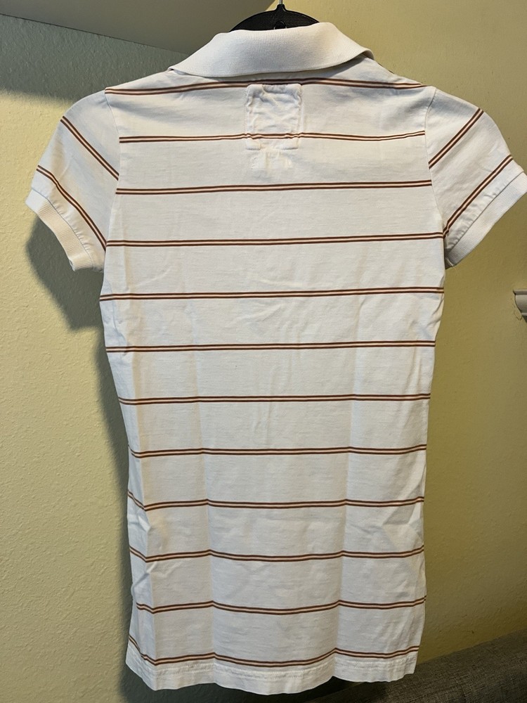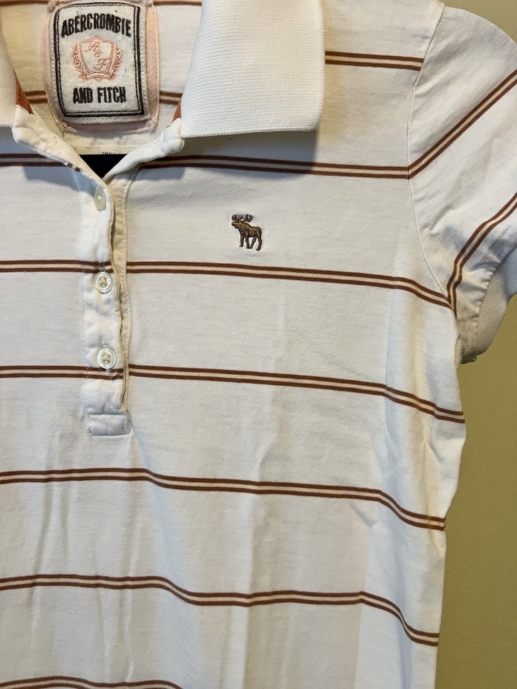 Abercrombie & Fitch Y2K women’s cropped Polo shirt w/ Moose logo Size small. There is two small dots (on third photo) tried to wash it but did not come off, but hardly recognizable. Other than that shirts in great condition.