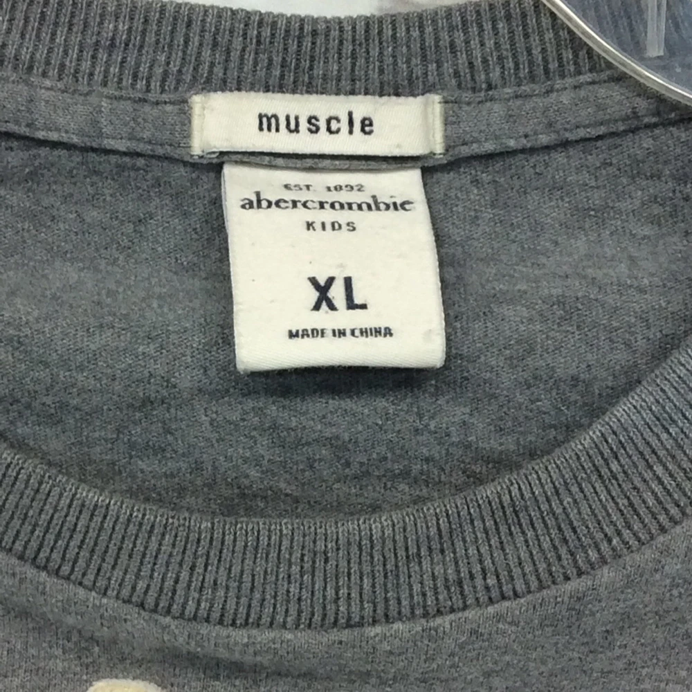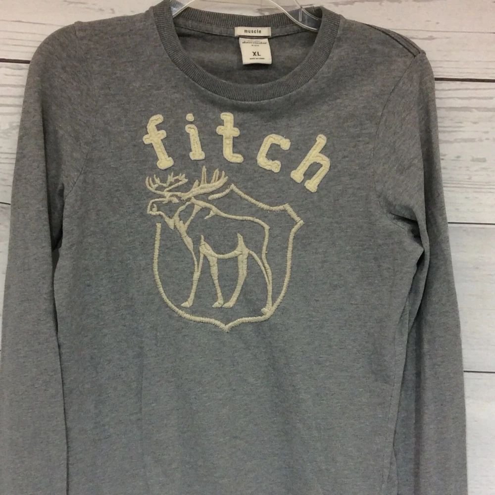 Abercrombie Kids Boys Long Sleeve Crew Neck Muscle T Shirt Size XL Gray Moose. some loose threads on front shown in 3rd photo. Measurements laying flat across are approximately: Chest armpit to armpit: 16.5” Length front shoulder to bottom hem: 23” Sleeves: 26”