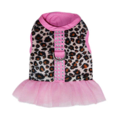 Sweet harness with animal print. Adorned with rhinestone buckle and tulle trimmings. Cotton lining. Velcro closures. 50% cotton, 50% polyester. Pink.