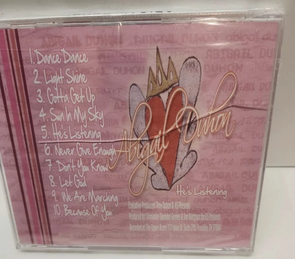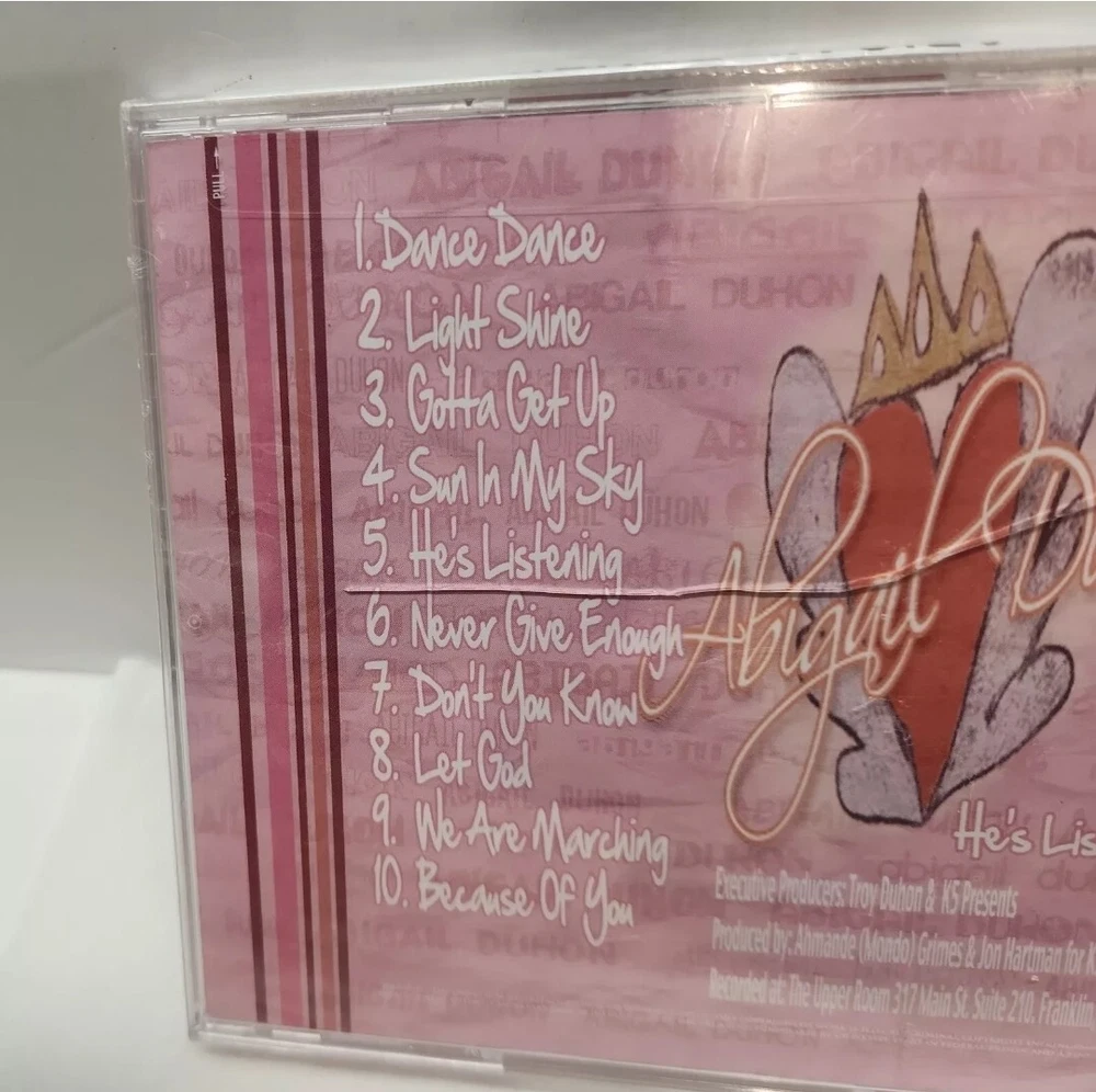 Experience the soulful melodies of Abigail Duhon with the rare CD "He's Listening," a collection that showcases her inspiring vocal talent. Catering to a variety of celebratory occasions from birthdays to weddings, this album is a fitting soundtrack for any joyful event. The CD comes in a standard jewel case, reflecting the rich multicolored theme of the artist's music. As a notable release from the 2000s era, "He's Listening" features a blend of Rock & Pop genres with a Christian style, marked by Duhon's heartfelt performances. This edition, with its collector's and limited edition features, is a cherished item for fans and music collectors alike, commemorating Duhon's America's Got Talent journey and her standout debut recording. Look at pics for Tracklisting! Please pay within 3 business of purchase!