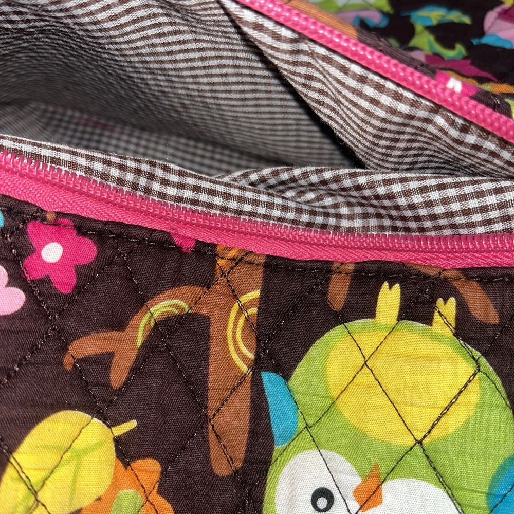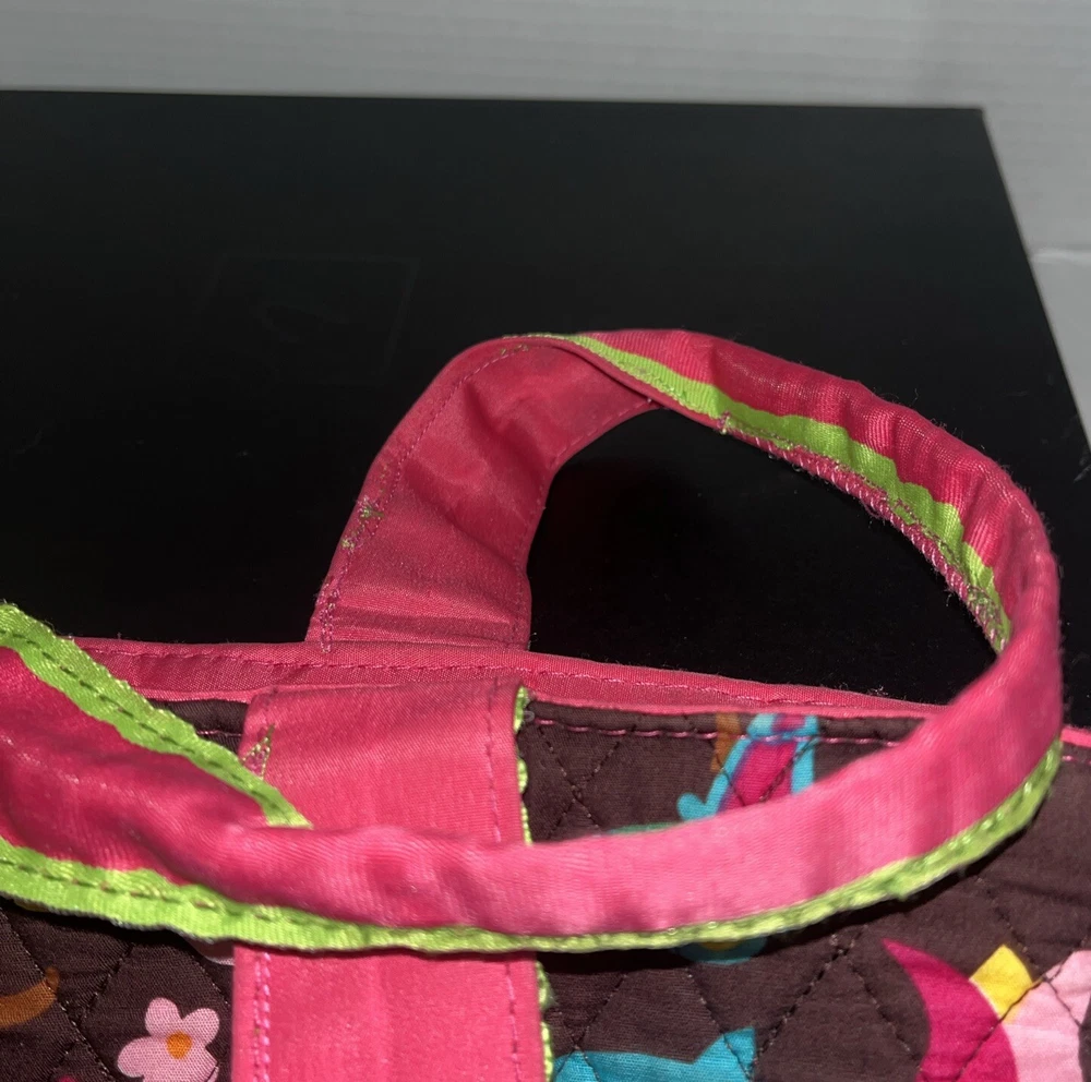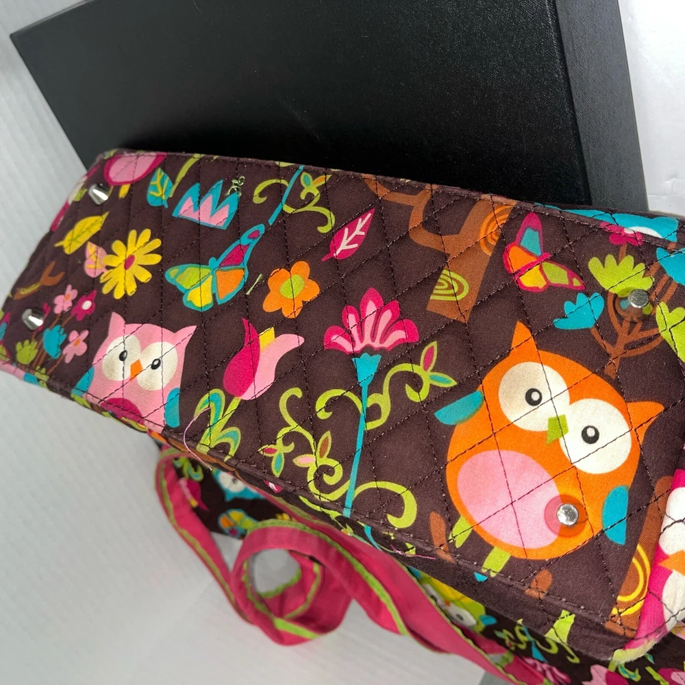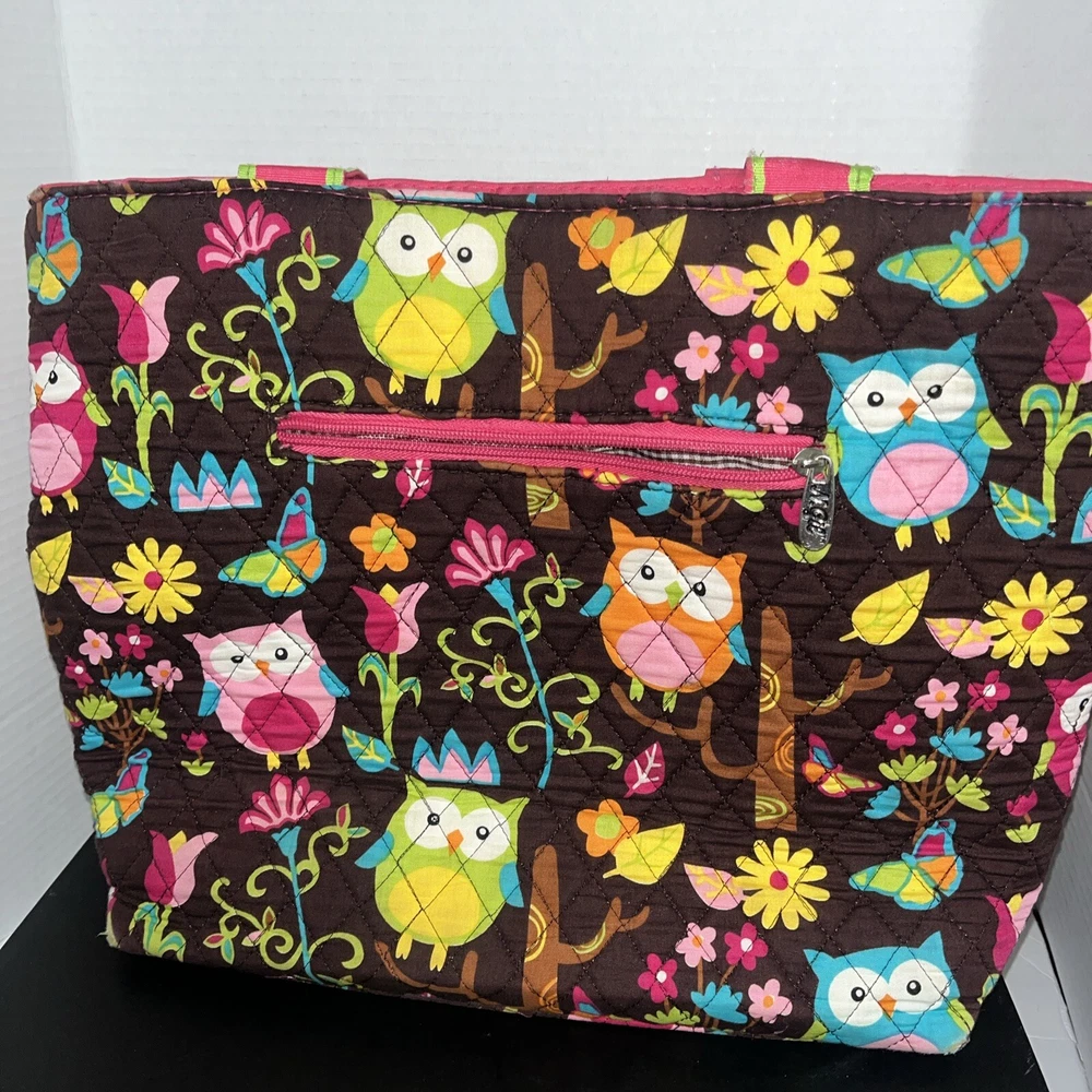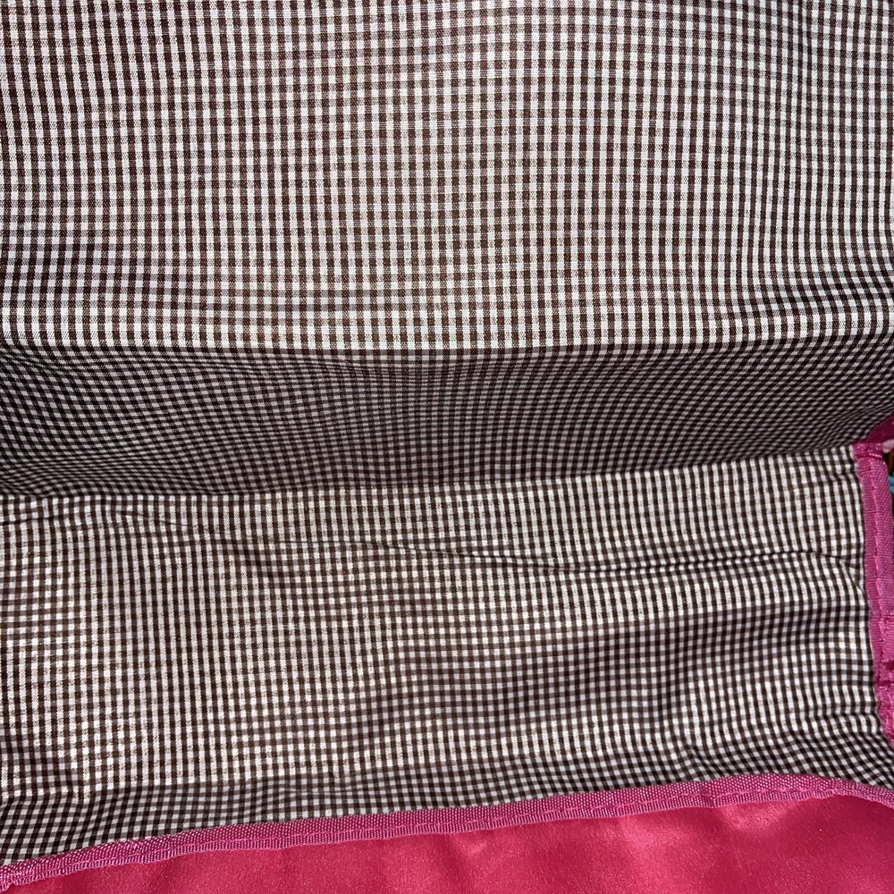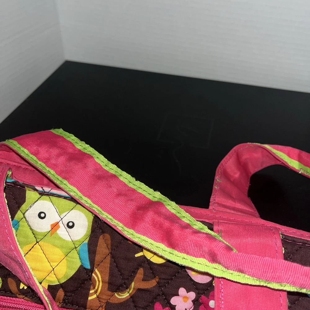 Condition issue: The straps had some seams coming loose and some trim frayed. I reinforced the seams on the parts that were coming loose and repaired it. See pictures of straps. Comes with a pouch and changing pad. This adorable N Gil diaper bag set features a charming floral pattern with pink owls and a personalized Abigail on the front. The bag is made of lightweight cotton material and includes inner and outer pockets, a changing pad, and a zipper for easy closure. It's perfect for girls and comes in a large size, making it ideal for carrying all your baby's essentials. The bag is not only stylish but also practical, with its many features making it easy to use and transport. It's a great choice for parents who want a fashionable yet functional accessory for their baby. Get your hands on this lovely N Gil diaper bag set today!