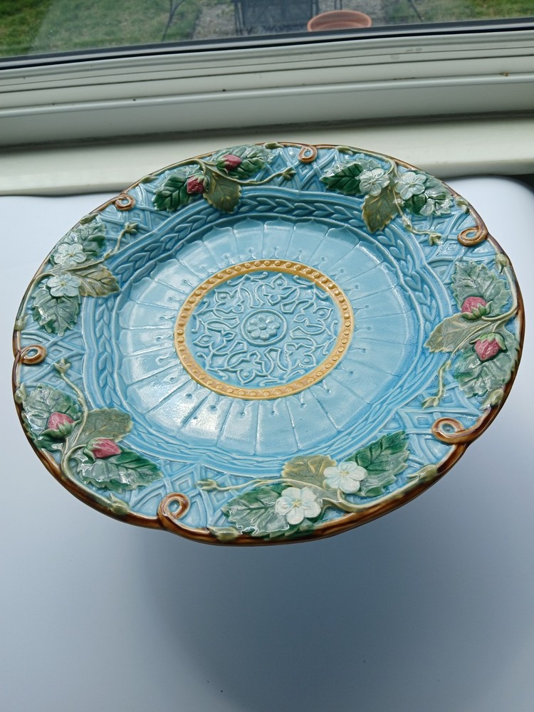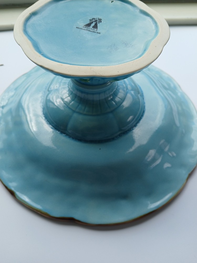 The Abigail's Garden Strawberry Pedestal Cake Stand is a decorative and charming addition to any kitchen or dining room. Crafted from ceramic in a round shape, this cake stand features a floral and garden theme, perfect for showcasing your favorite baked goods. The art pottery production technique adds a unique touch to this piece, making it a standout piece of decorative cookware. Perfect for serving and displaying cakes, cupcakes, or desserts, this cake stand is both functional and stylish. it is in excellent condition, no chips cracks or crazing Measures approximately 11" D, 5" H