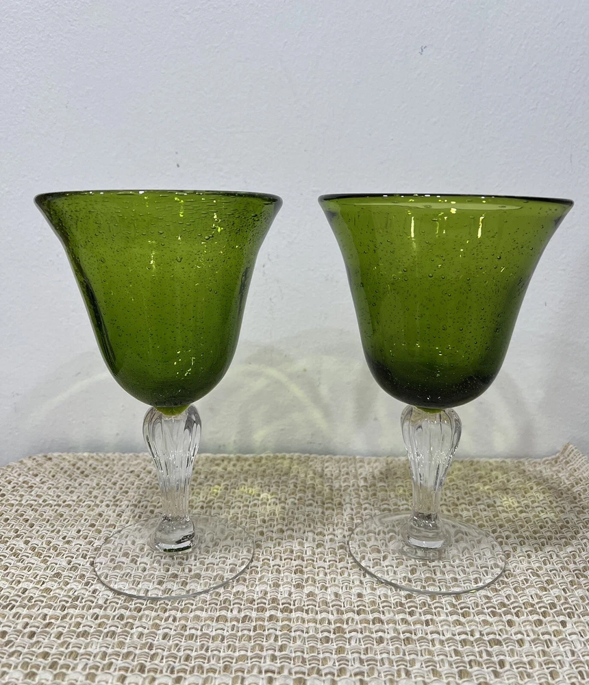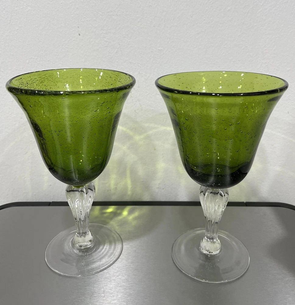 Elevate your drinking experience with this elegant set of two Abigail's Green Bubble Seeded Water Wine Glassware Stemware. These hand-blown glasses are made of high-quality glass material, ensuring a durable and long-lasting usage. The glasses are designed in a round shape and feature a unique green color that adds a touch of elegance to any occasion. The set includes two glasses with a height of 8 inches and a width of 4.5 inches, making it perfect for serving wine to your loved ones. Whether you're hosting a party or enjoying a glass of wine after a long day, these glasses are sure to impress. Abigail's Wine Glasses are a must-have for any wine lover, and they are perfect for any occasion.