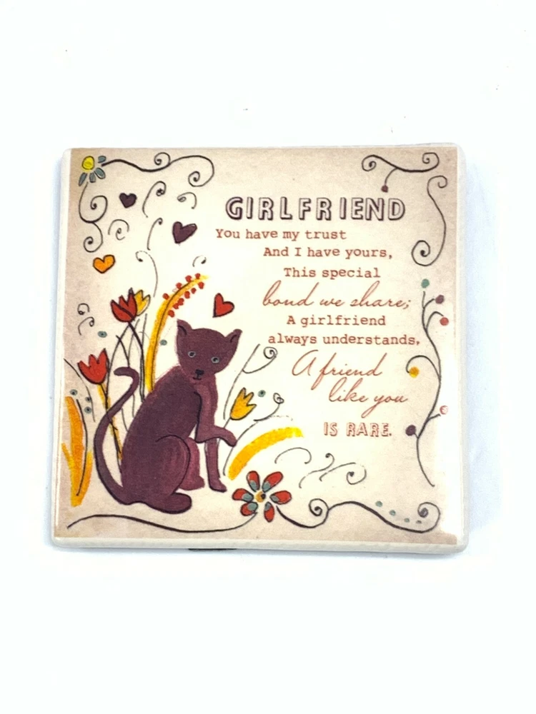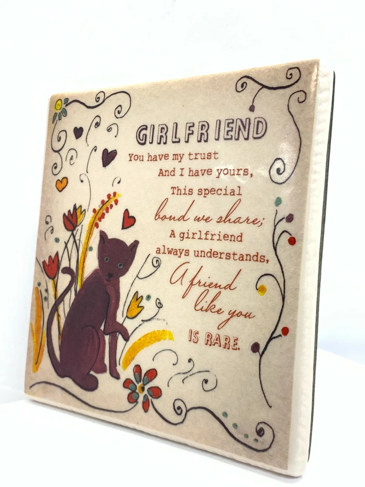 Chattering Parrots High Quality Free Shipping Customer Support About Face Design's Girlfriend Inspired Hand Crafted Ceramic White Tile: 5 x 5" Subscribe to our newsletter for weekly updates! About Face Design's Girlfriend Inspired Hand Crafted Ceramic White Tile: 5 x 5" Brand New Create an everlasting bond with this meaningful present that will warm your girlfriends heart. It’s a nice décor that can be placed anywhere around the house. Do not doubt it will be deeply treasured throughout the years. Wait and see the smile you will cause as you surprise her with this gift. This a beautifully designed, tile sign that would make a great addition to any table, shelf or collection. Features: Heart felt message on the front for your special girlfriend. 5 x 5" Tile on the back Foldable Sign Stand on the back. Distinctive artwork with a cat and floral background. Unique Gift for Someone Special in Your Life! Brand: About Face Designs Theme: Classical Floral Inspired Characters: House Cat Dimensions: 5 x 5 inch tile Brand New Subscribe to our newsletter for weekly updates! Check out our other items ! Be sure to add us to your favorites list ! We are not the manufacturer of this item. We do guarantee that the item you receive will be a genuine product as described. Please browse our store, for many more varieties of products by various designers and manufacturers BUY NOW! Payment Shipping Returns Payment Shipping Returns We accept payment by any of the following methods: PayPal ● PayPal Credit ● Credit Card Debit Card ● Apple Pay ● Google Pay Please pay as soon as possible after winning an auction, as that will allow us to post your item to you sooner! We offer FREE shipping ! Your order will be dispatched within 1 working day of receiving payment (Monday-Friday) and you should expect to receive it one or two days after dispatch (for orders sent RM 1st Class). Any product you return must be in the same condition you received it and in the original packaging. Please keep the receipt. High Quality Free Shipping Customer Support See our other items [Subscribe to our newsletter for weekly updates!] (https://my.ebay.com/ws/eBayISAPI.dll?AcceptSavedSeller&linkname=includenewsletter&sellerid=lenwasse&_trksid=) About Face Design's Girlfriend Inspired Hand Crafted Ceramic White Tile: 5 x 5" Brand New Create an everlasting bond with this meaningful present that will warm your girlfriends heart. It’s a nice décor that can be placed anywhere around the house. Do not doubt it will be deeply treasured throughout the years. Wait and see the smile you will cause as you surprise her with this gift. This a beautifully designed, tile sign that would make a great addition to any table, shelf or collection. Features: ---Heart felt message on the front for your special girlfriend. ---5 x 5" Tile on the back ---Foldable Sign Stand on the back. ---Distinctive artwork with a cat and floral background. ---Unique Gift for Someone Special in Your Life! Brand: About Face Designs Theme: Classical Floral Inspired Characters: House Cat Dimensions: 5 x 5 inch tile Brand New [Subscribe to our newsletter for weekly updates!] (https://my.ebay.com/ws/eBayISAPI.dll?AcceptSavedSeller&linkname=includenewsletter&sellerid=lenwasse&_trksid=) Check out our [other items] (https://stores.ebay.com/chatteringparrots/) ! Be sure to add us to your [favorites list] (https://my.ebay.com/ws/eBayISAPI.dll?AcceptSavedSeller&sellerid=lenwasse) ! We are not the manufacturer of this item. We do guarantee that the item you receive will be a genuine product as described. Please browse our store, for many more varieties of products by various designers and manufacturers Chattering Parrots About Face Design's Girlfriend Inspired Hand Crafted Ceramic White Tile: 5 x 5" Subscribe to our newsletter for weekly updates! About Face Design's Girlfriend Inspired Hand Crafted Ceramic White Tile: 5 x 5" Brand New Create an everlasting bond with this meaningful present that will warm your girlfriends heart. It’s a nice décor that can be placed anywhere around the house. Do not doubt it will be deeply treasured throughout the years. Wait and see the smile you will cause as you surprise her with this gift. This a beautifully designed, tile sign that would make a great addition to any table, shelf or collection. Features: Heart felt message on the front for your special girlfriend. 5 x 5" Tile on the back Foldable Sign Stand on the back. Distinctive artwork with a cat and floral background. Unique Gift for Someone Special in Your Life! Brand: About Face Designs Theme: Classical Floral Inspired Characters: House Cat Dimensions: 5 x 5 inch tile Brand New Subscribe to our newsletter for weekly updates! Check out our other items ! Be sure to add us to your favorites list ! We are not the manufacturer of this item. We do guarantee that the item you receive will be a genuine product as described. Please browse our store, for many more varieties of products by various designers and manufacturers BUY NOW! Payment We accept payment by any of the following methods: PayPal ● PayPal Credit ● Credit Card Debit Card ● Apple Pay ● Google Pay Please pay as soon as possible after winning an auction, as that will allow us to post your item to you sooner! Shipping We offer FREE shipping ! Your order will be dispatched within 1 working day of receiving payment (Monday-Friday) and you should expect to receive it one or two days after dispatch (for orders sent RM 1st Class). Returns Any product you return must be in the same condition you received it and in the original packaging. Please keep the receipt. See our other items High Quality Free Shipping Customer Support Subscribe to our newsletter for weekly updates! About Face Design's Girlfriend Inspired Hand Crafted Ceramic White Tile: 5 x 5" Brand New Create an everlasting bond with this meaningful present that will warm your girlfriends heart. It’s a nice décor that can be placed anywhere around the house. Do not d