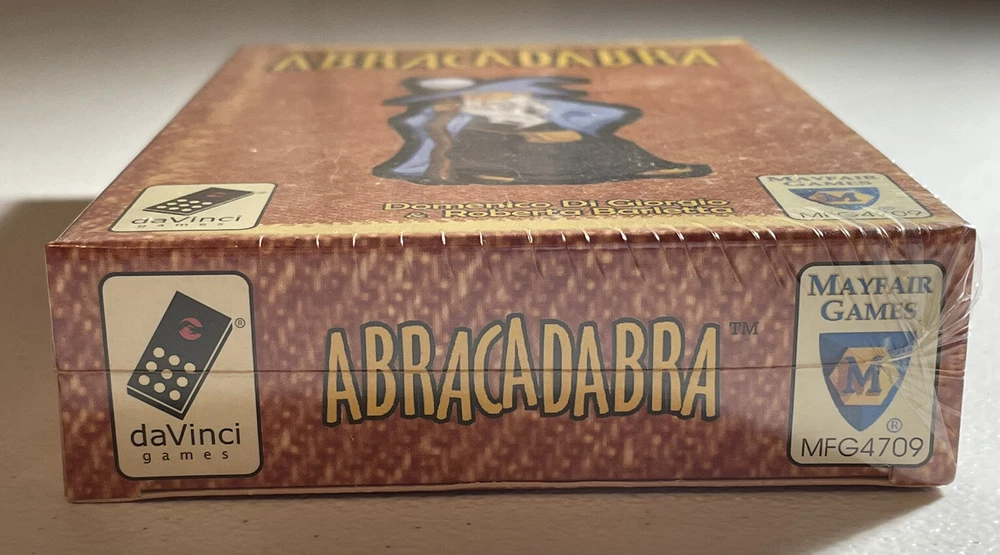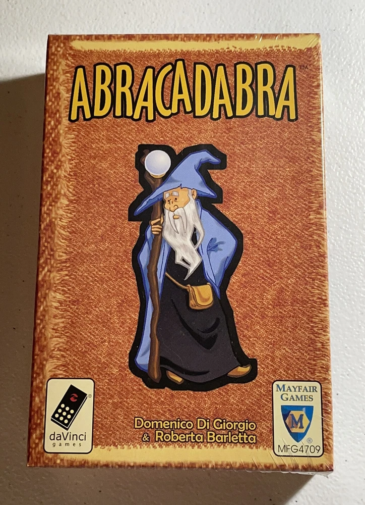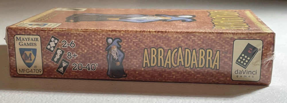 Abracadabra Card Game *Sealed* Produced by Mayfair Games, daVinci Games 2004 2-6 Players, 20-40 Minutes The best pupils from the school of magic gather to try out their most powerful spells. But be careful of their clumsy broomstick! A game of forming combinations for 2-6 wizards. Contents: 40 cards. 3 towers, 6 summary cards, 58 spells, rules. ----------------------------------------------------------------------------- We value our customers and appreciate you shopping with Distant Realms Gaming. As collectors ourselves, we understand the need for your items to be packed with care. Please send a message with any questions you may have or if you’d like any additional photos, we’ll be glad to help. Our products are passed down from a retired Hobby Shop owner, who shared his passion for the realms of gaming and fantasy. After decades of being immersed in gaming, Ahzz’z collection became quite vast. We will be listing an array of gaming specialty items as we sort through these relics. Terms & Conditions Funds are due within 48 hours of the transaction, after which incomplete payment transactions will be cancelled. Returns Accepted. It is the buyer’s responsibility to pay all return shipping costs. Refunds will be issued when the item arrives back to us in the same condition that it was sent in, untampered and unopened if sealed.