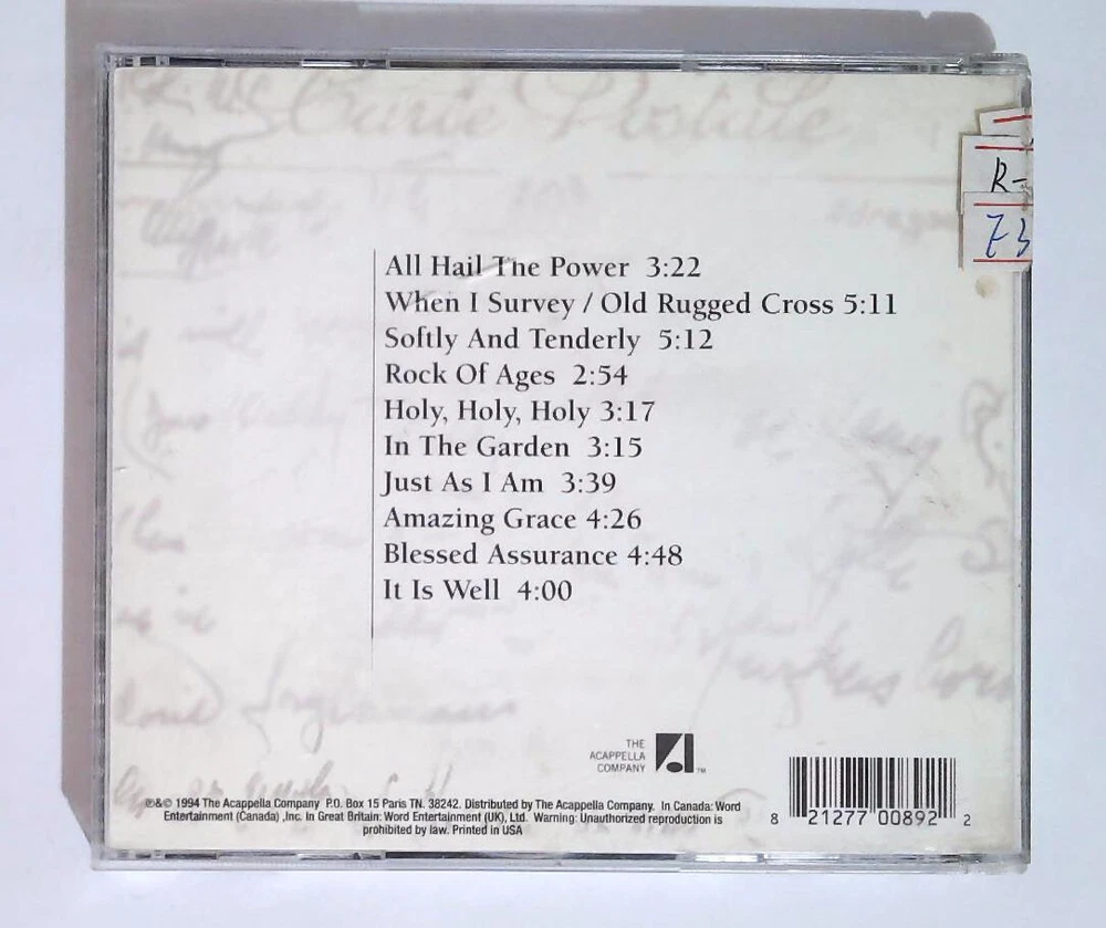 1 All Hail The Power 2 When I Survey / Old Rugged Cross 3 Softly And Tenderly 4 Rock Of Ages 5 Holy, Holy, Holy 6 In The Garden 7 Just As I Am 8 Amazing Grace 9 Blessed Assurance 10 It Is Well