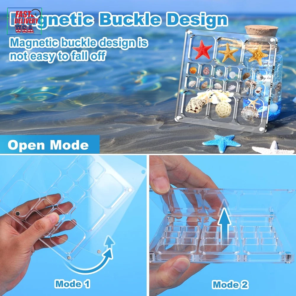 Store New Arrivals Add to Favorite View Feedback Contact Acrylic Magnetic Seashell Display Box,Clear Sea Shell Display Box,Beach Magnet Storage Organizer Case for Seashell Diamond Beads,18 Grids,Transparent,1 Pack Description Frame Size 5.8 x 5.8 inches Item Dimensions L x W x H 4"L x 3"W x 0.6"H Mounting Type Tabletop Mount Color 1 Pack-18 Grids Shape Rectangular Frame Material Acrylic Product Dimensions 4"L x 3"W x 0.6"H Do you feel sorry for the beautiful little seashells you see at the seaside but don't have the right box to treasure them? Our acrylic magnetic seashell display box can just help you solve this problem. The high transparency acrylic material makes every detail of your seashells clearly visible, keeping them away from dust and damage, and displaying the beauty and stories from nature to your family and friends to share the joy and make your life more full of beauty and surprises. This is not only a sea shell display box, but also a powerful assistant for you to record beauty and create art. Whether you want to capture the depth and serenity of the sea or the gentleness and warmth of the sunset, let the shells shine in the display box, transforming ordinary moments into extraordinary memories, making this moment as dreamy as a dream, and becoming unforgettable and precious memories. This shell display box measures 5.8*5.8*0.4in, easy for you to carry around. There are 18 square compartments for storing a variety of small shells to keep your collection organised. What's more considerate is that 2 tweezer is included, which makes you more comfortable in picking up shells. This display box can accompany you to record every beautiful moment on the beach, and keep those unique small shells safe, leaving unforgettable memories for your trip. Crystal Clear Visibility:Made of high quality acrylic,ensuring that your treasured seashells are clearly visible and undamaged.The transparent design of the box allows every delicate detail of the shells to be perfectly presented,as if the flavour and beauty of the ocean were gathered in it,adding a touch of elegance and mystery to your treasured items.You can rest assured of long-term use without worrying about quality.Note:The product comes with a protective film,please tear it off before use. Magnetic Locking Design, 2 Ways to Open: Our acrylic seashell display box is equipped with magnet adsorption device on all four corners to ensure that the lid fits tightly with the box and is not easy to fall off, which is both safe and stable. Two convenient ways to open, so you can display and access the shells easily and freely. You can simply push the lid counterclockwise or clockwise; or you can choose to open the lid directly upwards. Equally convenient and time-saving. Multifunctional Storage Organisation Solution: In addition to storing seashells, it can also be used to store small stones, crystals, diamonds, nail art rhinestones, earrings, etc., keeping your items in order and easily accessible. Its versatility allows you to easily meet a variety of storage display needs without having to buy multiple storage boxes. Acrylic Magnetic Seashell Display Box,Clear Sea Shell Display Box,Beach Magnet Storage Organizer Case for Seashell Diamond Beads,18 Grids,Transparent ABOUT US We offer the best prices around on high quality products. Our E-store includes media such as books, movies, music and games while offering electronics, toys, sporting apparel, clothing, tools, general home, garden items and more. SHIPPING We are always working hard to ensure your package arrives as soon as possible. Please understand that some factors like weather, high postal traffic, and the performance of shipping companies are outside of our control. We offer free shipping to the lower 48 states and ship within 2 business days of payment, usually sooner. We do not accept P.O. Boxes. Please provide a physical address. For shipping outside of the continental USA, we only use eBay's Global Shipping Program.The item is shipped to KY and then sent to the rest of the world. International customers are responsible for all duties and taxes. Continue to check out in order to calculate costs for shipping the item to your country. Messages regarding eBay's Global Shipping Program MUST be directed at eBay EXCLUSIVELY. RETURNS We offer a 30-Day Return Policy on items which you are not completely satisfied with. You have the option for a full-refund or an exchange of the item. No returns are available on items shipped outside of the USA. PAYMENT We accept PayPal. CONTACT US This page content is yet to come Please ad us to your favorite seller and visit again later Thank You CUSTOMER SATISFACTION We try our very best to make sure every customer is completely satisfied. If there's a problem, message us! We're happy to help. WE ACCEPT Copyright © 2021 AutoDS. | All Rights Reserved