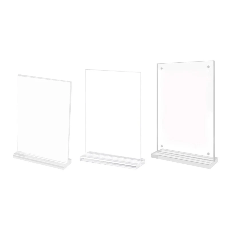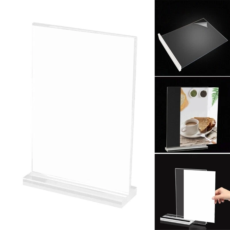 Features: and high This acrylic sign holders is for showcasing important information with its easy storage. Our acrylic sign holders adopts a vertical double-sided and both sides can display pictures and posters, Suitable for retailers, exhibitors, and restaurant operators who need a convenient way to present information to their customer. T-shape sign holders is suitable for various setting such as retail counters, supermarket shelves, exhibition venues, and restaurant tables where product and promotional information demands to be displayed. Take of this portable display stand to effectively communicate with your customer and improve your business presentation. Specifications: Acrylic A Size: about 15x21cm/5.91x8.27'' B Size: about 21x29.7cm/8.27x11.69'' C Size: about 21.7x28cm/8.54x11.02'' Type: 3 Kind Optional Package Includes: 1x Acrylic Sign Holders note: Please allow 1-3cm errors due to manual measurement. Due to difference betweeen different monitors,the picture may not reflect the actual color of the item.