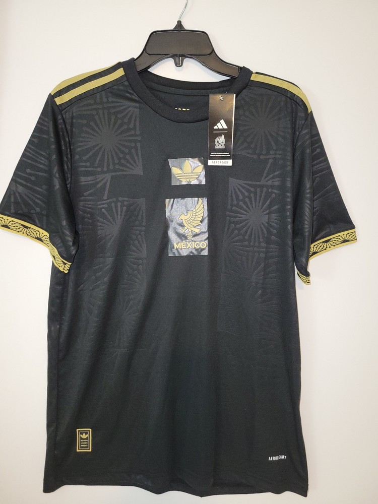 The Adidas Aeroready Mexico Soccer 2025 Gold Cup Black Jersey is a high-quality, officially licensed jersey for men in size Large. Made by Adidas, the jersey features the colors of black and represents the Mexico national soccer team. This jersey is perfect for fans of Mexican soccer looking to show their support for their favorite team in style. Made in Mexico, this jersey is a must-have for any fan of the sport.