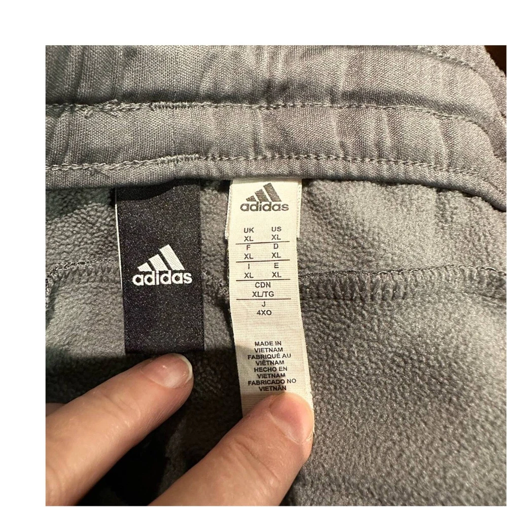 This is a super nice pair of Adidas men’s XL fleece lined joggers with zipper ankle. In excellent gently used condition.