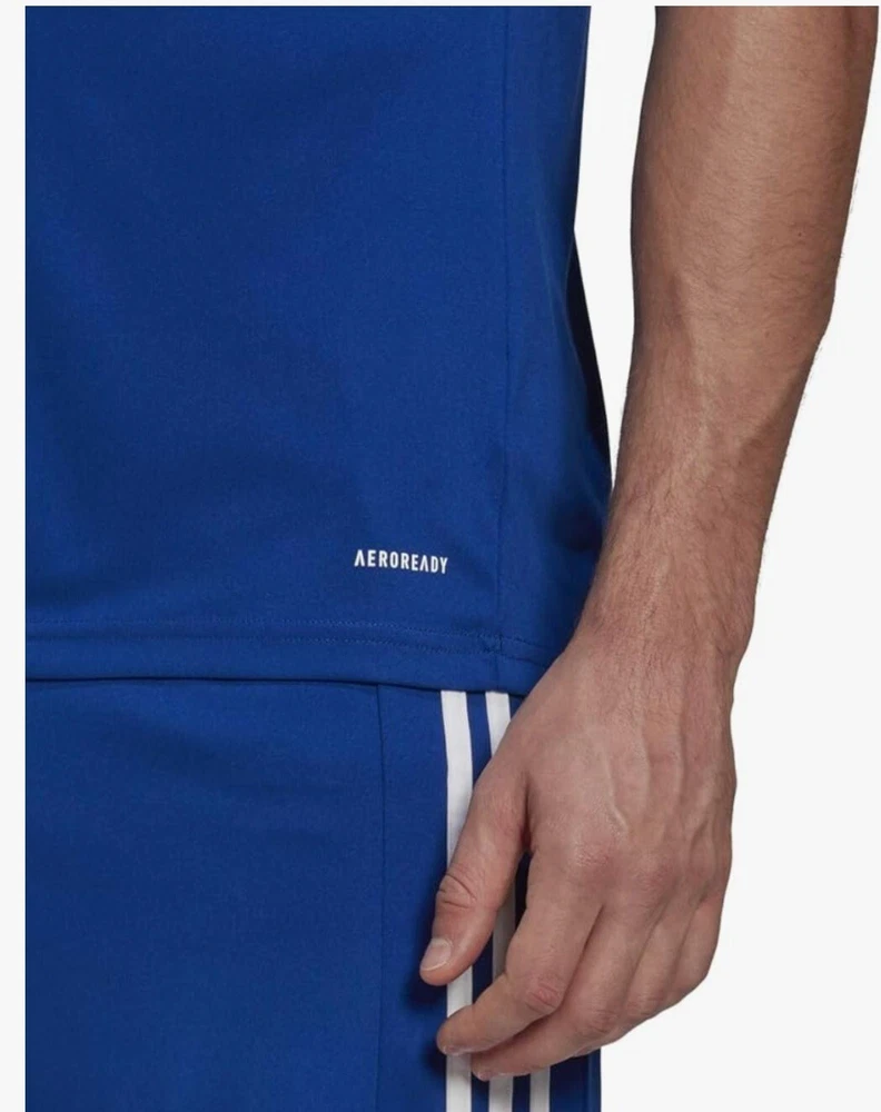 Elevate your activewear game with this Adidas Men's Squadra 21 Sports Shirt Football Short Sleeve Soccer Jersey. The royal blue and white jersey features an asymmetrical sleeve, crew neckline, and pullover closure. It's made of a lightweight and breathable jersey fabric with contrasting trim and moisture-wicking technology for all seasons. The shirt is machine washable and quick-drying, making it perfect for soccer and football activities. It also comes with a tagless design and is compressible for easy storage. Get ready to astound the crowd with this stylish and functional jersey from Adidas.