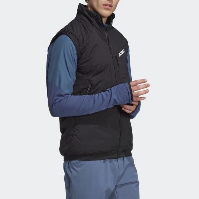 Elevate your outdoor adventures with the Adidas Terrex Techrock Stretch Primaloft Vest in black. This versatile vest is perfect for travel, casual wear, and workouts alike. The mid-length vest features a full zip closure, softshell fabric type, and a band collar style. With a slim fit and stretchy material, this vest is designed for comfort and mobility. It comes with a range of features including pockets, insulation, and a lightweight design. The Adidas Techrock model is a part of the TERREX product line and is ideal for outdoor activities such as hiking, hunting, and running.