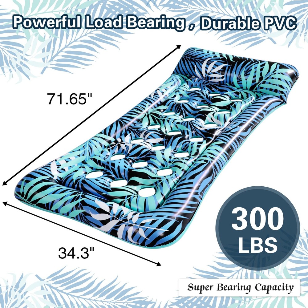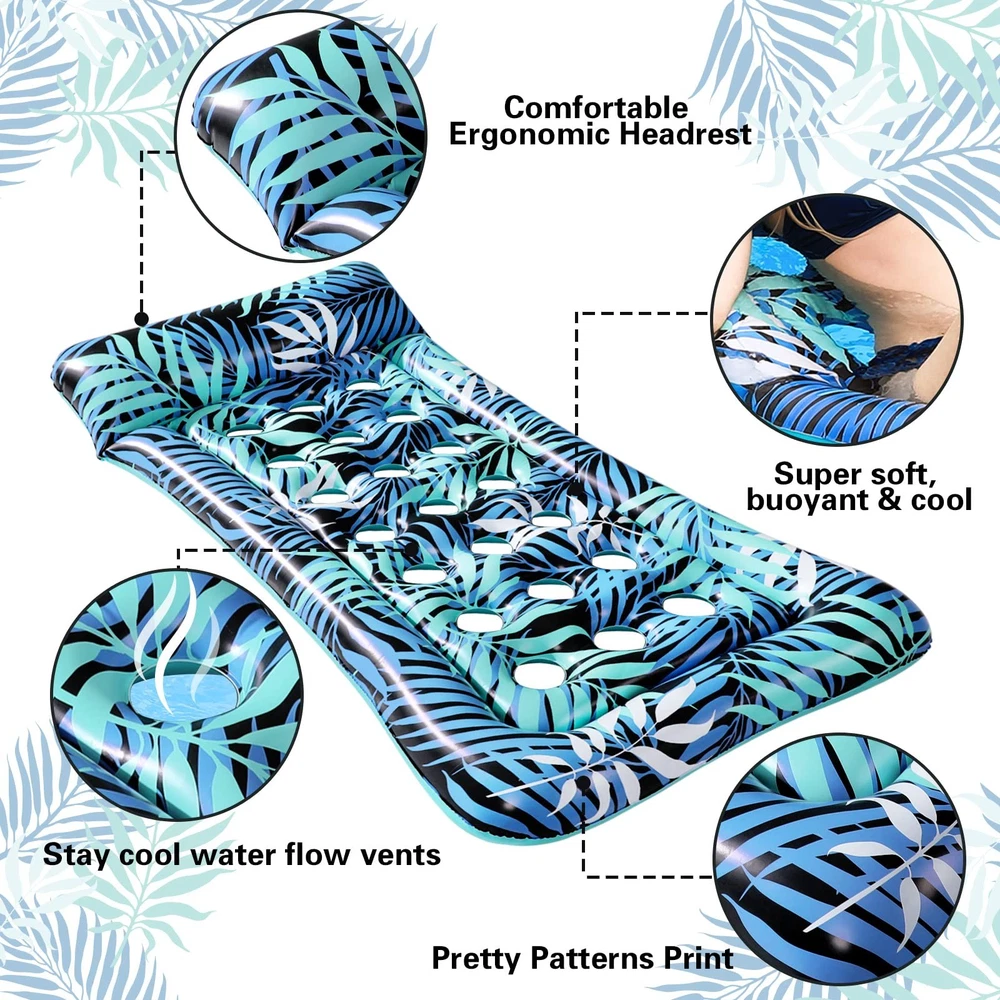 Pool Floats Raft - Pool Float Lounge Adult Size, Inflatable Fabric Pool Float with Headrest, Ultra-Comfort Cooling Inflatable Pool Floats for Adults