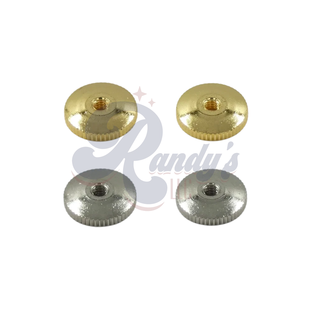 Allows ABR-1 guitar bridges to move with the use of maestro vibrato vibrola tremolo tailpieces. Includes two ABR-1 bridge thumbwheels for electric guitar. 6-32. Fits Gibson®. Available in: Coarse Thumbwheels - Steel Black Chrome 3032BC (2-Pack) Black Nickel 3032PC (2-Pack) Chrome 3032C (2-Pack) Gold 3030G (2-Pack) Nickel 3031N (2-Pack) Domed Thumbwheels - Brass Gold 3053G (2-Pack) Nickel 3053N (2-Pack) Fine Thumbwheels - Brass Black Chrome 3042BC (2-Pack) Black Nickel 3042PC (2-Pack) Chrome 3042C (2-Pack) Gold 3040G (2-Pack) Nickel 3041N (2-Pack) Historic Vintage Thin Thumbwheels - Steel Gold 3033G (2-Pack) Nickel 3033N (2-Pack) ** MATCHING HARDWARE ** ABR-1 Thumbwheel Posts Gold 3050G Brass (2-Pack) Nickel 3051N Brass (2-Pack) Gold 3052G Steel (2-Pack) Nickel 3052N Steel (2-Pack) Asian/Import Bridge to Vintage ABR-1 Conversion Bridge Posts w/ Hex Inset Gold 3055G (2-Pack) Nickel 3055N (2-Pack) Nashville Tune-O-Matic TOM to Vintage ABR-1 Conversion Bridge Posts w/ Hex Inset Chrome 3054C (2-Pack) Gold 3054G (2-Pack) Nickel 3054N (2-Pack) Advanced Music Products (AMP) is a division of Advanced Plating Inc (API). Engineering and manufacturing guitar parts for the titans of the industry. Made in the USA for over 60 years. OEM fit and finish. Trust the brand your favorite brand's trust.