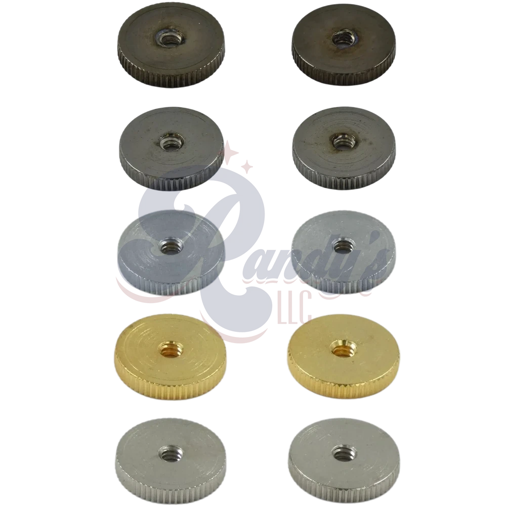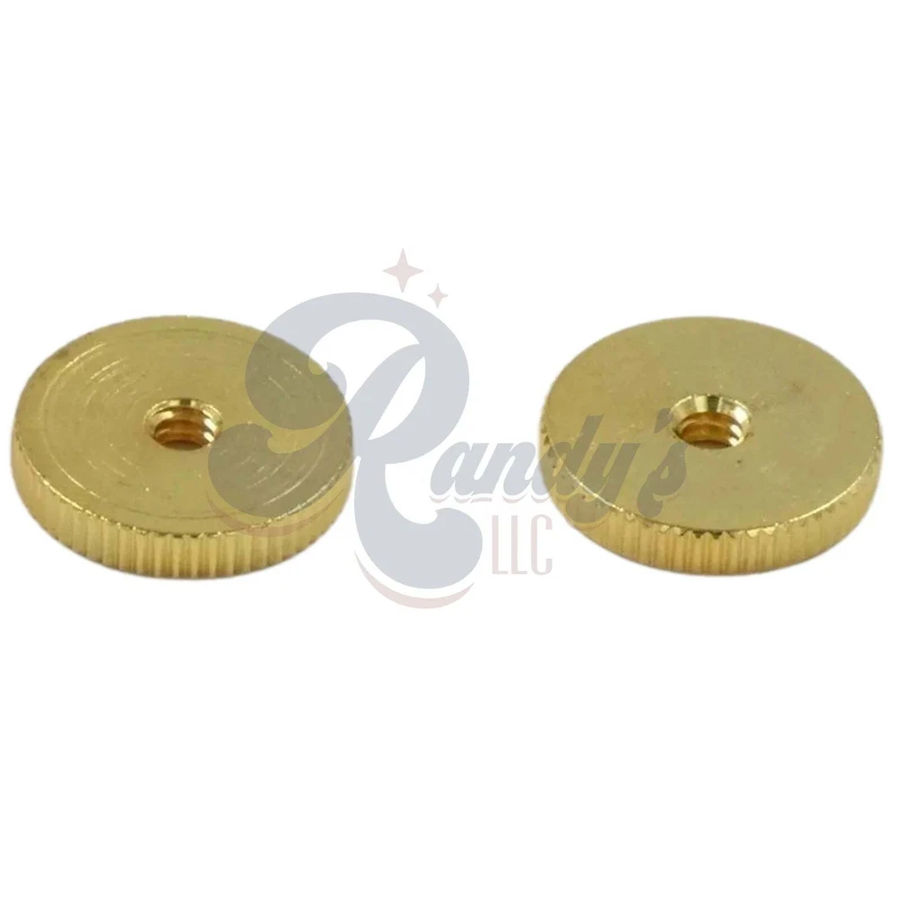 Includes two ABR-1 bridge thumbwheels for electric guitar. 6-32. Fits Gibson®. Available in: Coarse Thumbwheels - Steel Black Chrome 3032BC (2-Pack) Black Nickel 3032PC (2-Pack) Chrome 3032C (2-Pack) Gold 3030G (2-Pack) Nickel 3031N (2-Pack) Domed Thumbwheels - Brass Gold 3053G (2-Pack) Nickel 3053N (2-Pack) Fine Thumbwheels - Brass Black Chrome 3042BC (2-Pack) Black Nickel 3042PC (2-Pack) Chrome 3042C (2-Pack) Gold 3040G (2-Pack) Nickel 3041N (2-Pack) Historic Vintage Thin Thumbwheels - Steel Gold 3033G (2-Pack) Nickel 3033N (2-Pack) ** MATCHING HARDWARE ** ABR-1 Thumbwheel Posts Gold 3050G Brass (2-Pack) Nickel 3051N Brass (2-Pack) Gold 3052G Steel (2-Pack) Nickel 3052N Steel (2-Pack) Asian/Import Bridge to Vintage ABR-1 Conversion Bridge Posts w/ Hex Inset Gold 3055G (2-Pack) Nickel 3055N (2-Pack) Nashville Tune-O-Matic TOM to Vintage ABR-1 Conversion Bridge Posts w/ Hex Inset Chrome 3054C (2-Pack) Gold 3054G (2-Pack) Nickel 3054N (2-Pack) Advanced Music Products (AMP) is a division of Advanced Plating Inc (API). Engineering and manufacturing guitar parts for the titans of the industry. Made in the USA for over 60 years. OEM fit and finish. Trust the brand your favorite brand's trust.
